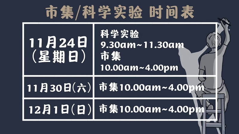 此外,街头科学实验和市集也将在展出期间进行,时间如下。