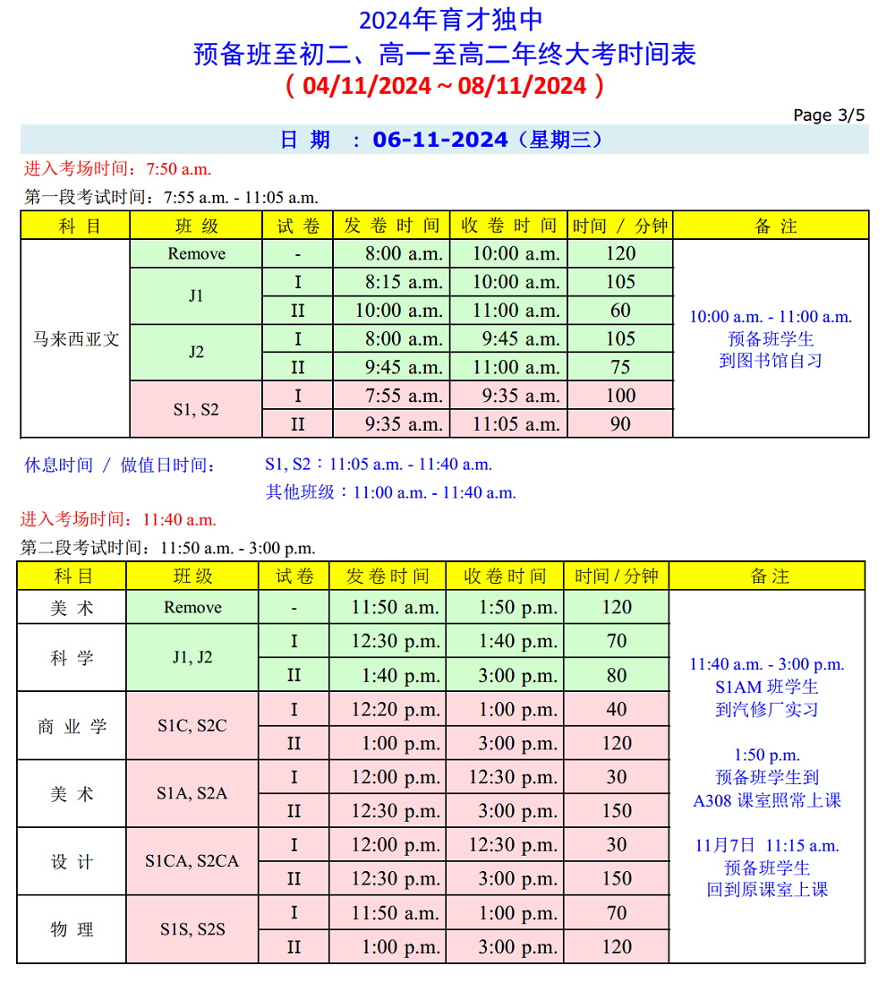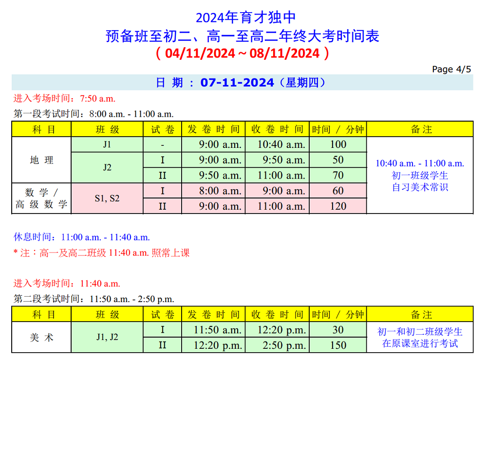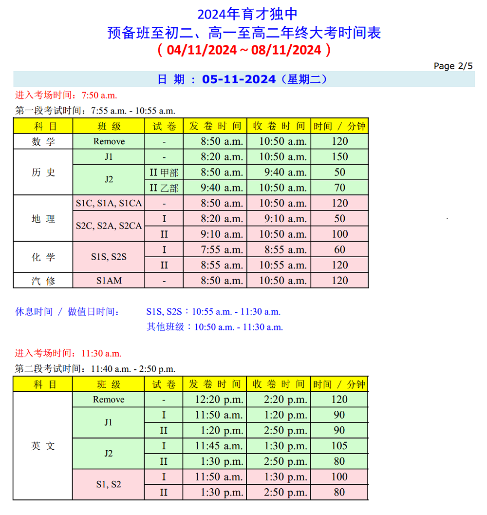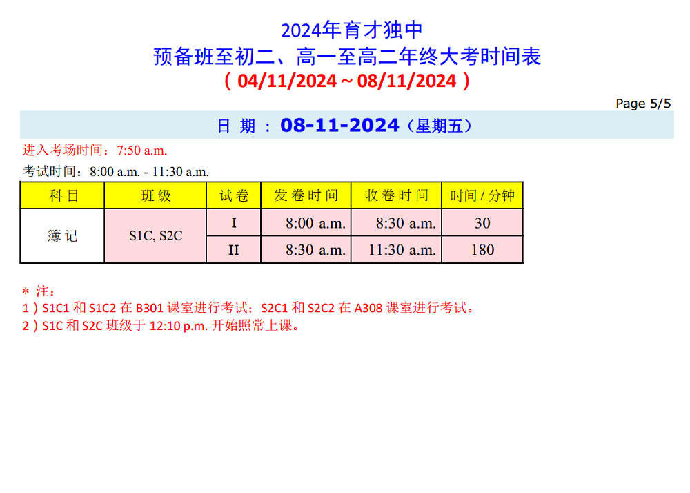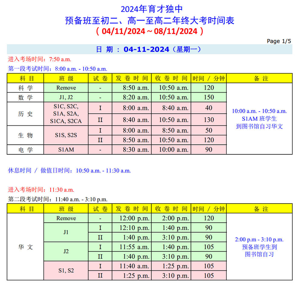 年 终 大 考 时 间 表