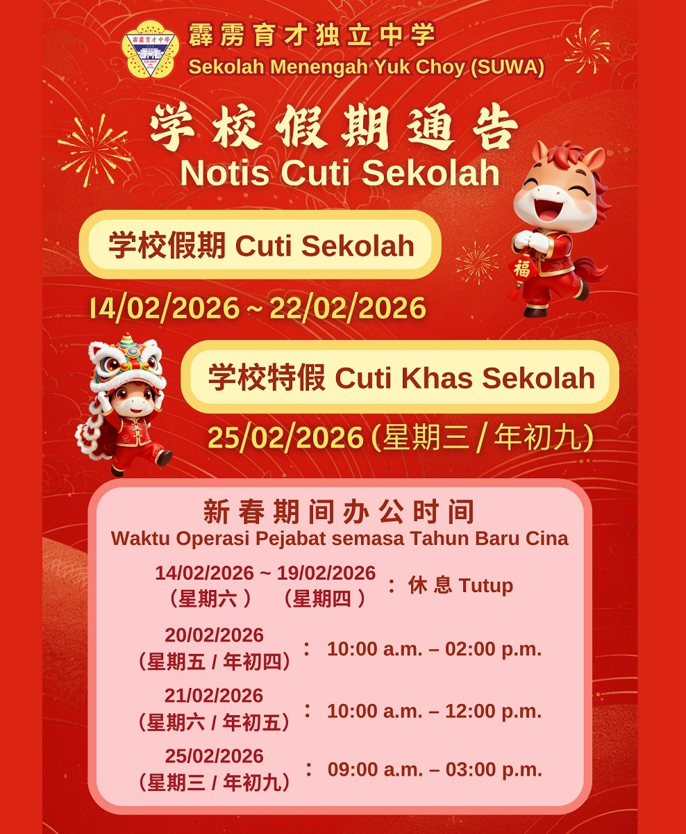 【通告】新春期间学校假期及办公时间