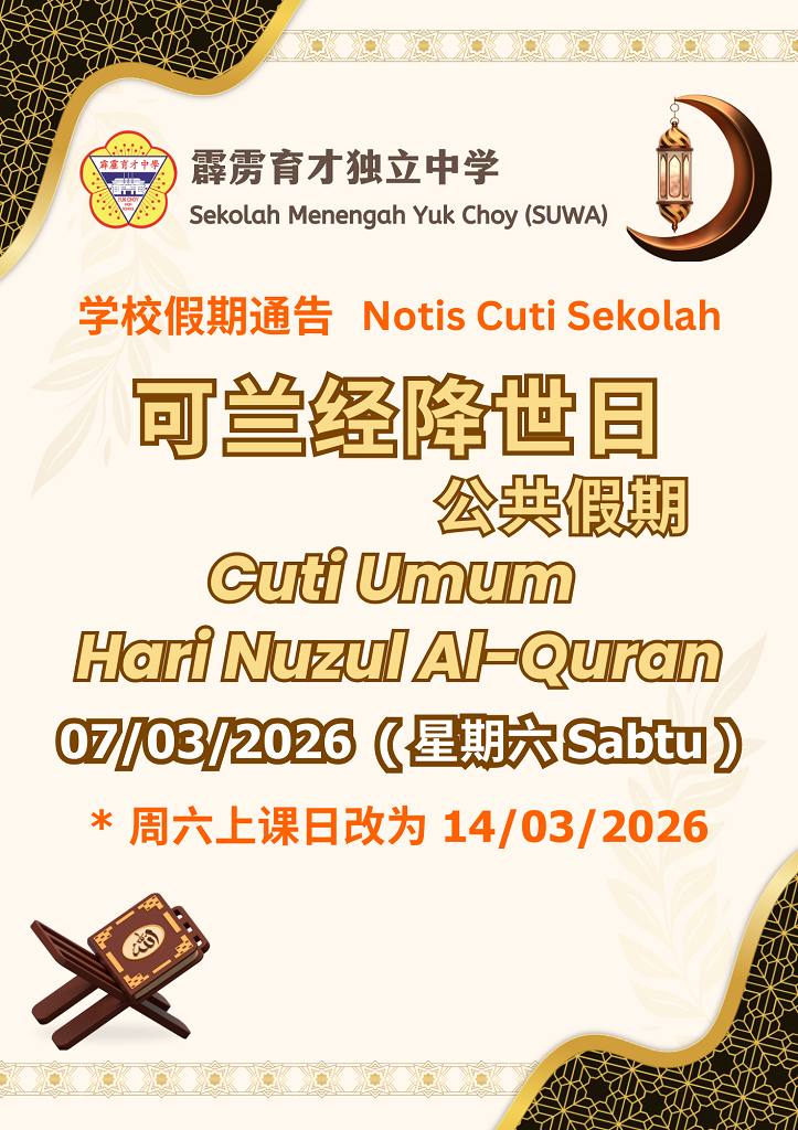 【通告】可兰经降世日公共假期:
