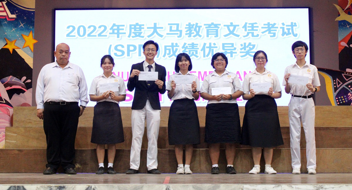 2022年SPM(马来西亚教育文凭)成绩优异奖 冯嘉恩:7 A(华文、国文、英文、道德教育、数学、高级数学、科学) 高文谏:5 A(华文、英文、数学、高级数学、科学) 何蕙杉:4 A(英文、道德教育、数学、科学) 马惠仪:3 A(华文、道德教育、数学) 王凯僡:3 A(华文、英文、数学) 刘 臻:3 A(英文、数学、科学) |