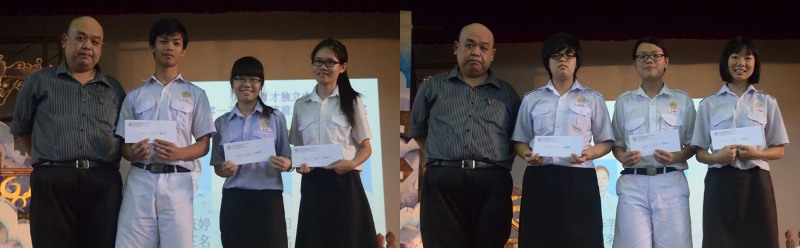 【高三理】 第一名:蔡有衡 第二名:陈永健 第三名:黄咏辉 . 【高三文美】 第一名:王启轩 第二名:黄盈媚 第三名:陈晓韵 |