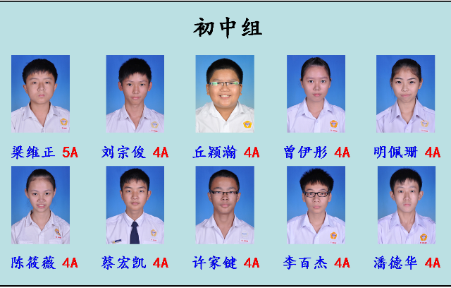 4A:梁维正、刘宗俊、丘颖瀚、曾伊彤、明佩珊、陈筱薇、蔡宏凯、许家键、李百杰、潘德华