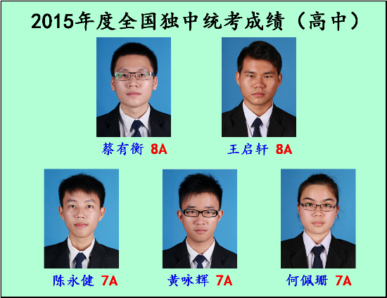 除了在高中统考有亮眼的成绩外,初中统考方面也获得不俗的成绩,共有3人考获7科A和4人考获6科A的佳绩。