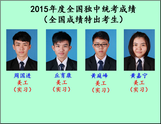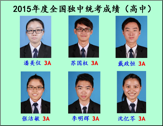 第41届全国独中统一考试(统考)日前放榜,本校共有21名高中考生考获3科A以上的成绩,并有8名学生荣膺全国特出考生。