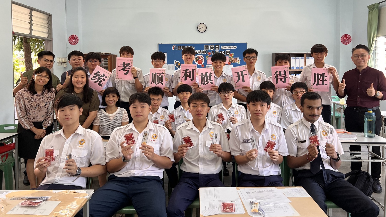 本校校长室、教务处、训育处和辅导处日前一同为应届高三统考生送上全体教职员的祝福和纪念品,预祝统考生们统考顺利,旗开得胜!【相关新闻链接:为初三统考生送上统考前的祝福】