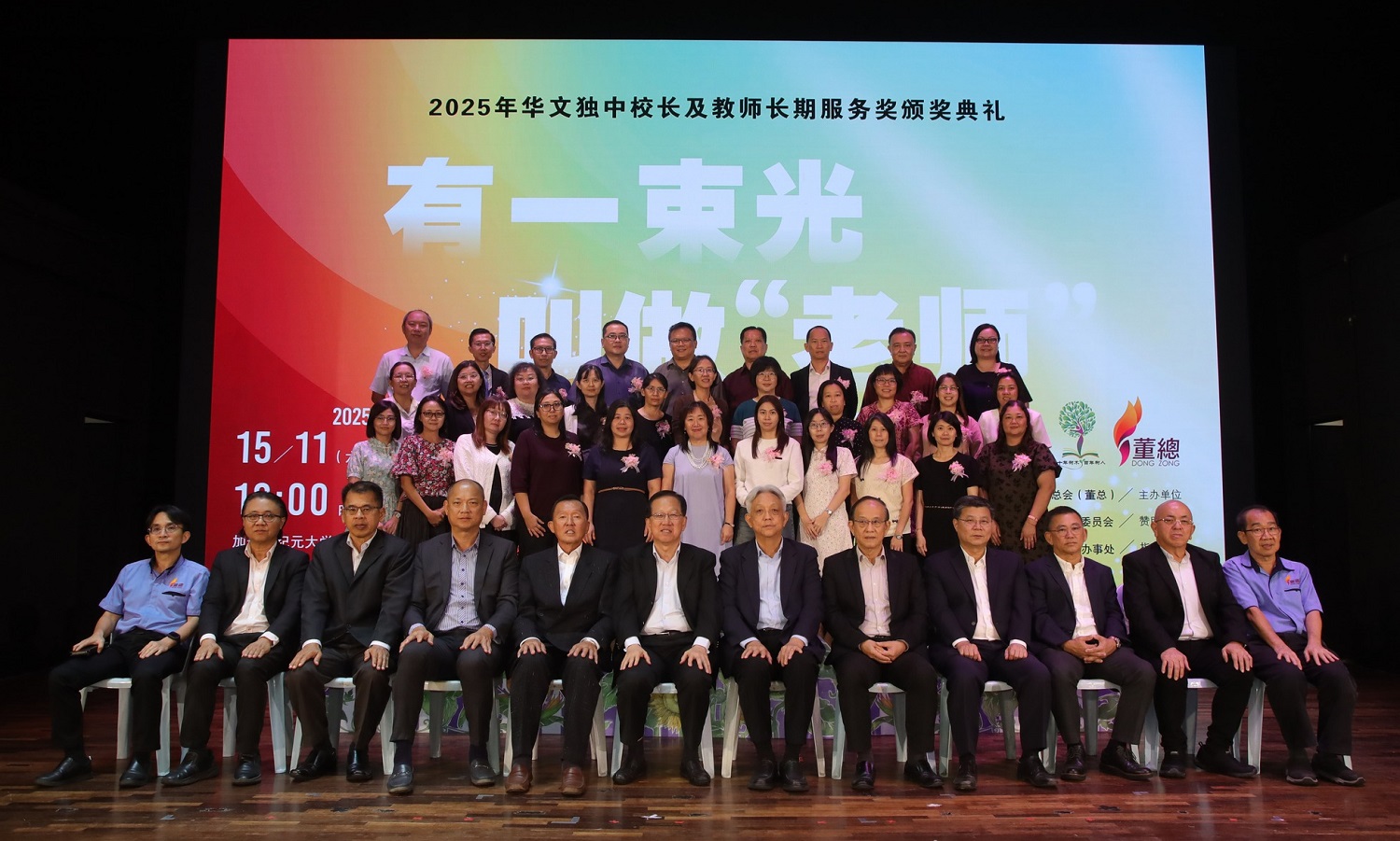 本校8位老师获2025年华文独中教师长期服务奖 2025年11月18日发布 11月15日(星期六),董总在新纪元大学学院举办“2025年华文独中校长及教师长期服务奖颁奖典礼”。我校共有8位老师荣获此殊荣,其中既有服务满5年的青年教师,也有奉献长达40年的资深教师,让人深刻感受到教育路上的薪火相传、代代相续。 获奖教师名单: 40 年:邹国强老师 人生能有多少个十年?正是这一份坚守与热忱,令人由衷敬佩。多年间,他们在无数学子心中播下希望的种子,如今这些种子已悄然发芽,更在世界各地茁壮成长 — — 这便是教师最深刻的成就,也是最动人的回响。 上排右四:邹国强老师(服务40年) . 上面算起第二排右三:纪瑞芬老师(服务20年) . 上面算起第一排左四:张耀荣老师(服务10年)、 . 上面算起第三排右一:陈嘉慧老师(服务5年) 上海中侨职业技术大学讲座