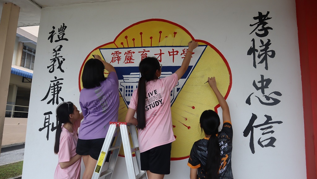 旧画新色 2025年11月21日发布 清晨的空气微凉,高一文美班同学在叶丝淣老师的带领下,为校园褪色的壁画重新上色。经过风吹雨打的墙面,在同学们的巧手下又焕发新彩,仿佛为校园注入了一股鲜活的能量,使每个角落都更明亮、更有生命力。 “做中学,学中做” — — 同学们把课堂上所学的技巧化为实际行动,不仅美化了环境,也在实践中获得了更深刻的学习体验。 本校8位老师获2025年华文独中教师长期服务奖