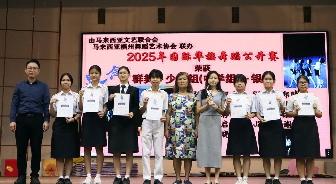 舞“银”婆娑,翩若惊鸿 在陈湄枝老师与幸齐能老师的带领下,本校舞蹈团于8月2日至3日远赴槟城拉曼理工大学(TAR UMT)分校,参与“国际华族舞蹈公开赛”。凭借精湛的舞艺与高度的团队默契,舞蹈团以作品《思念》从众多参赛队伍中脱颖而出,荣获银奖! 在此向指导教练、顾问老师、全体参赛学生及给予大力支持的家长们致以诚挚感谢。愿舞蹈团继续以舞传情,在舞台上发光发热,迈向更高的艺术殿堂!
