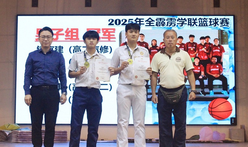 摄影:郑汶雯(高一商一)、何宗轩(初二仁) 本校8位球员代表北近打县篮球队参加2025年全霹雳学联篮球锦标赛 获得双料冠军