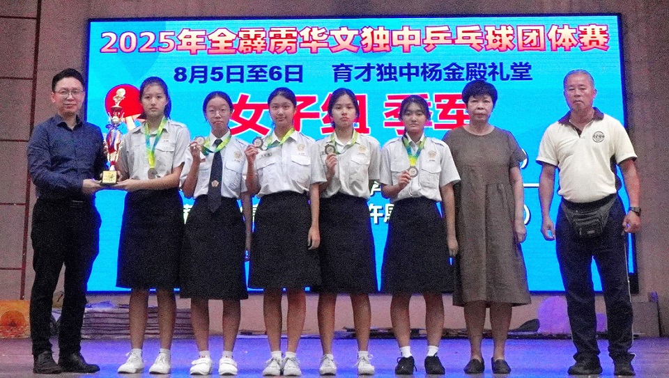 摄影:郑汶雯(高一商一)、何宗轩(初二仁) 2025年全霹雳华文独中乒乓球团体赛:女子组 季军