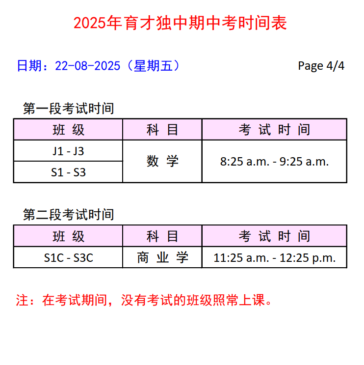 【期中考时间表】2025年8月19日至22日(星期二至星期五) 点击图片可浏览和下载考试时间表