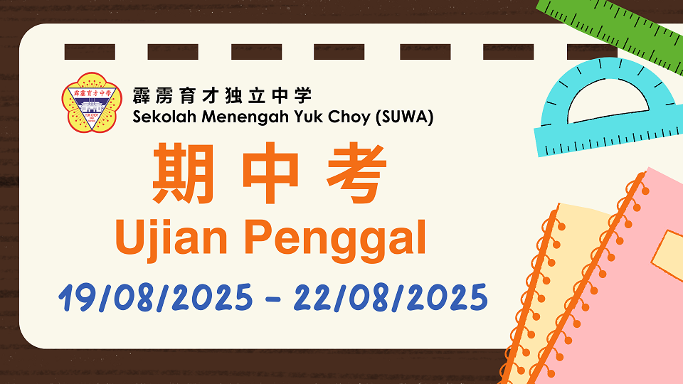 . . 刘国荣副校长在周会上表扬得奖学生。 摄影:郑汶雯(高一商一)、何宗轩(初二仁) 【期中考时间表】2025年8月19日至22日