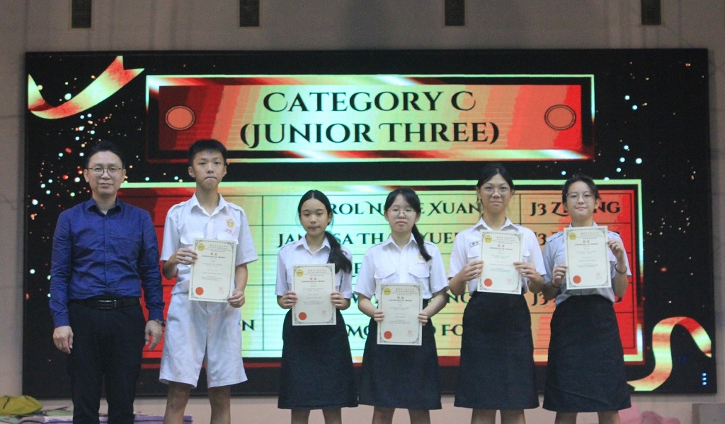 2025年校内华文作文比赛得奖名单 【 初 中 甲 组 】 冠军:李岢妤(初三孝) 亚军:何映蒨(初三孝) 季军:吴雨晴(初三信) 优胜奖: 莫巧怡(初三孝)、何汶昇(初三孝)、王丽嘉(初三忠)、刘宜欣(初三忠)、谭汶历(初三仁) . . 【 初 中 乙 组 】 冠军:罗旨柔(初二爱) 亚军:翁以琳(初二爱) 季军:郭芊咏(初二爱) 优胜奖: 刘珂柔(初二爱)、冯悦莹(初二忠)、黄茜洁(初二爱)、郑恺情(初二孝) . . 【 初 中 丙 组 】 冠军:庄煜棋(初一信) 亚军:张荔雯(初一义) 季军:许佳乐(初一信) 优胜奖: 方翊绅(初一忠)、黄舜汶(初一信)、张文俊(初一忠)、许家敏(初一仁)、张紫慧(初一孝) . . 【 高 中 甲 组 】 冠军:李瑩恩(高三理) 亚军:周海瞳(高三商一) 季军:蔡镓情(高二理) 优胜奖: 张皓礼(高三商一)、林靖芸(高三商一)、梁靖儿(高三理)、薛靖颖(高二商一)、黄家瑜(高一理)、 叶惠心(高二商二)、锺燕怡(高一理)、莫向程(高一商一)、陆宥绚(高一理)、吴沁儿(高一理) . . 【 高 中 乙 组 】 冠军:何咏萱(高三文) 亚军:梁景森(高一文美) 季军:刘学铭(高二文美) 优胜奖: 李宣佑(高一文美)、梁芷祯(高二文)、曾敬轩(高二文)、许芊琦(高三文美)、黄子舜(高三文美)、 李芝遴(高一文美)、方恩希(高一文)、李裕橞(高二文美)、张凯恩(高一文)、吴芷薇(高二文美) 摄影:郑汶雯(高一商一)、何宗轩(初二仁) 大专免息贷款签约仪式
