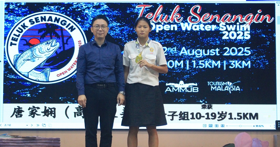 摄影:郑汶雯(高一商一)、何宗轩(初二仁) 海泳公开赛 Teluk Senangin Open Water Swim 2025:女子组 金牌