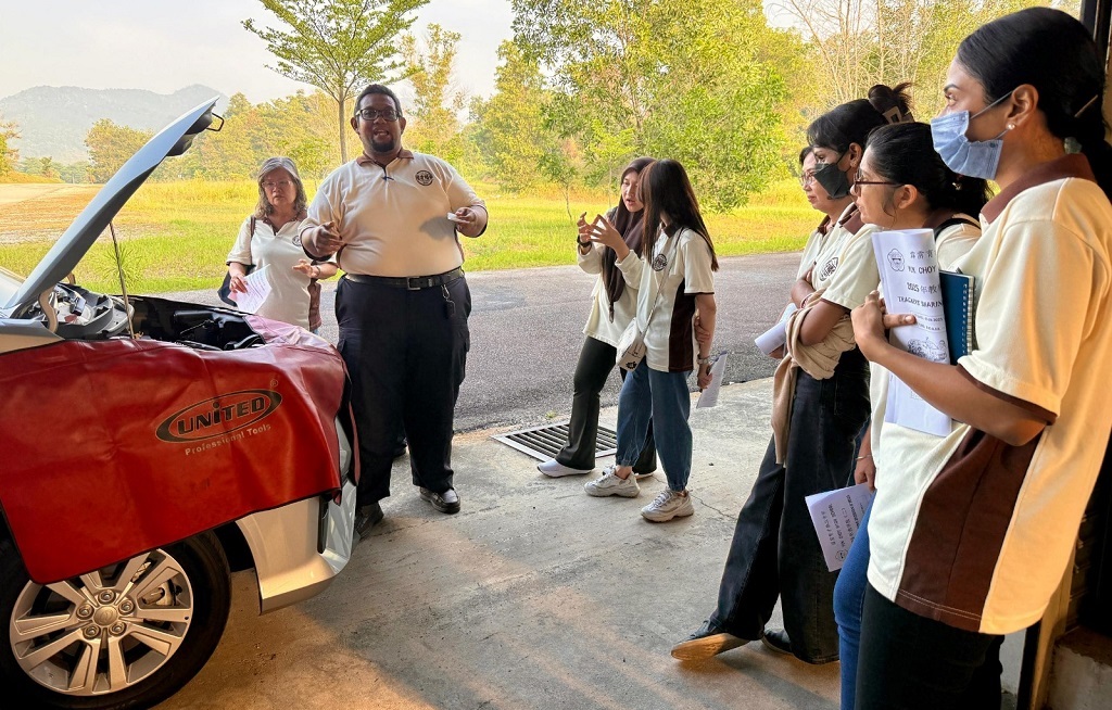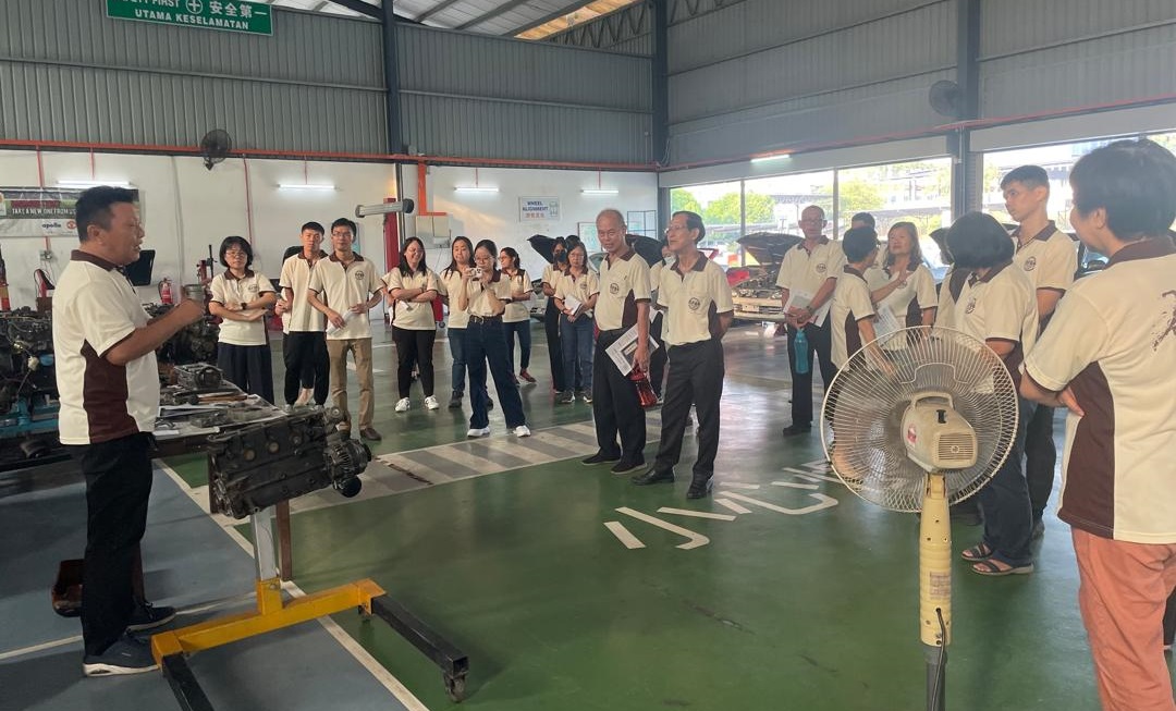 “教享悦(二)” 跨领域交流 · 激发创意课堂新火花 2025年8月11日发布 由教务处主办的“教享悦(二)”活动近日在本校顺利举行,旨在通过促进各学科教师的跨领域教学技能,全面提升教学质量,并借助相互切磋与经验交流,激发课堂的趣味与活力,从而为学生带来更高效、更具创意的学习体验。 活动开始前,由教务处主任胡丽珍老师赠送果篮予三位的主讲老师 — — 幸齐能老师、Cikgu Faizal 以及曾伟文老师,以表感谢之意。 在活动环节中,幸齐能老师为教师们带来一场深入浅出的“组合引擎之活塞安装”分享。他指出,报读汽修科的学生必须报考SKM(马来西亚技能证书),因此掌握汽车引擎的基础结构与运作原理,是踏入汽修领域的重要一步。 除了理论讲解,他也示范了活塞安装的实际过程,让教师们更直观地掌握相关知识。同时,Cikgu Faizal 也以马来文形式向友族教师进行分享与解释,确保不同语言背景的教师都能收获满满。 接着,活动进入了另一环节 — — “谁说教学不能玩?让游戏变成你的教学武器!”在这一环节中,教师们可根据自己想要的科目进行桌游设计,将趣味元素融入课堂,让学生在游戏中主动学习、加深印象,实现寓教于乐。 最后,活动在“亮出你的大招”环节中进入总结展示 — — 各组教师将向大家呈现并分享自己精心设计的桌游作品,现场气氛热烈,创意纷呈,也为教师们的跨领域教学提供了更多启发与可能。 本次活动不仅让教师们在跨领域教学理念与方法上有所提升,也激发了他们将创意与趣味融入课堂的热情。透过知识与经验的分享、合作与交流,教师们收获了新的教学灵感与实用策略,为今后的课堂带来更多可能与惊喜。 中国南宁书画大家莅临本校