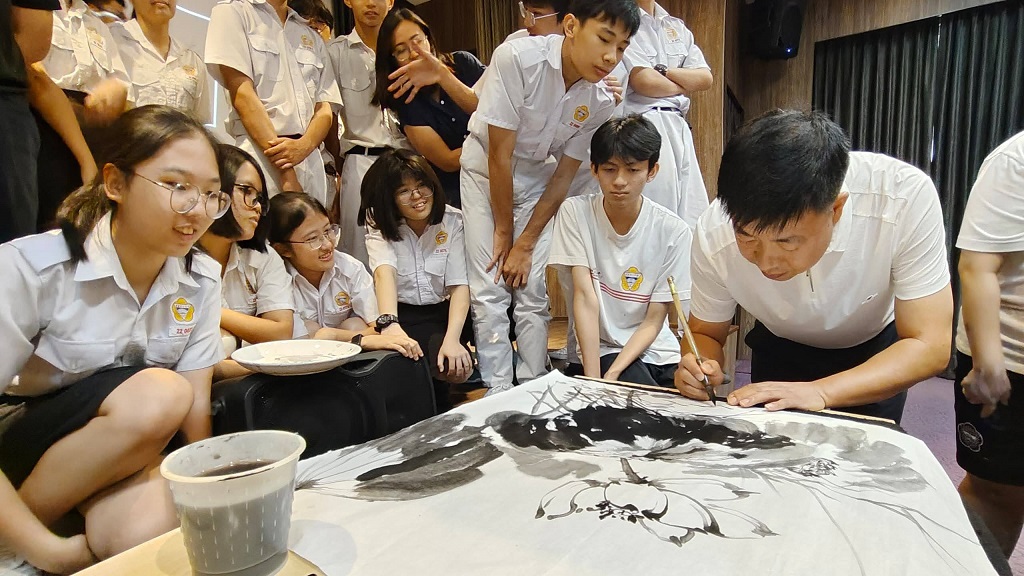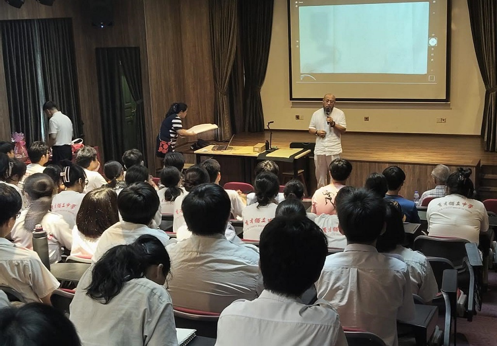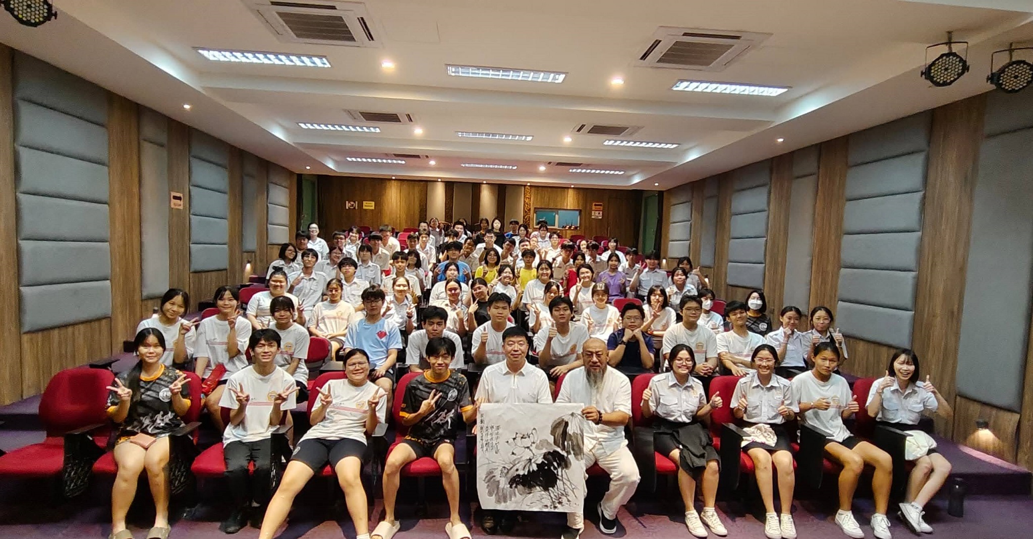 中国南宁书画大家莅临本校 2025年8月11日发布 日前,本校有幸迎来两位来自中国南宁的艺术大家 — — 中国画名家肖登员老师与书法名家纪成老师,在讲堂为全体文美班学生带来一场雅致而精彩的书画分享会。 会场墨香氤氲,笔墨之间流淌着东方艺术的韵味。肖老师挥毫泼墨,水墨氤氲间,宣纸上莲花次第盛开;纪老师运笔如飞,书法气韵生动,笔锋遒劲有力。学生们屏息凝神,唯恐错过每一笔的灵动与神采。 现场时而静谧无声,时而响起由衷的赞叹。两位老师深厚的造诣与独特的艺术魅力,不仅让学生们大开眼界,更在他们心中播下热爱与传承中华艺术的种子。 《星洲日报大霹雳》报道:育才创校118周年纪念晚宴12月5日举行