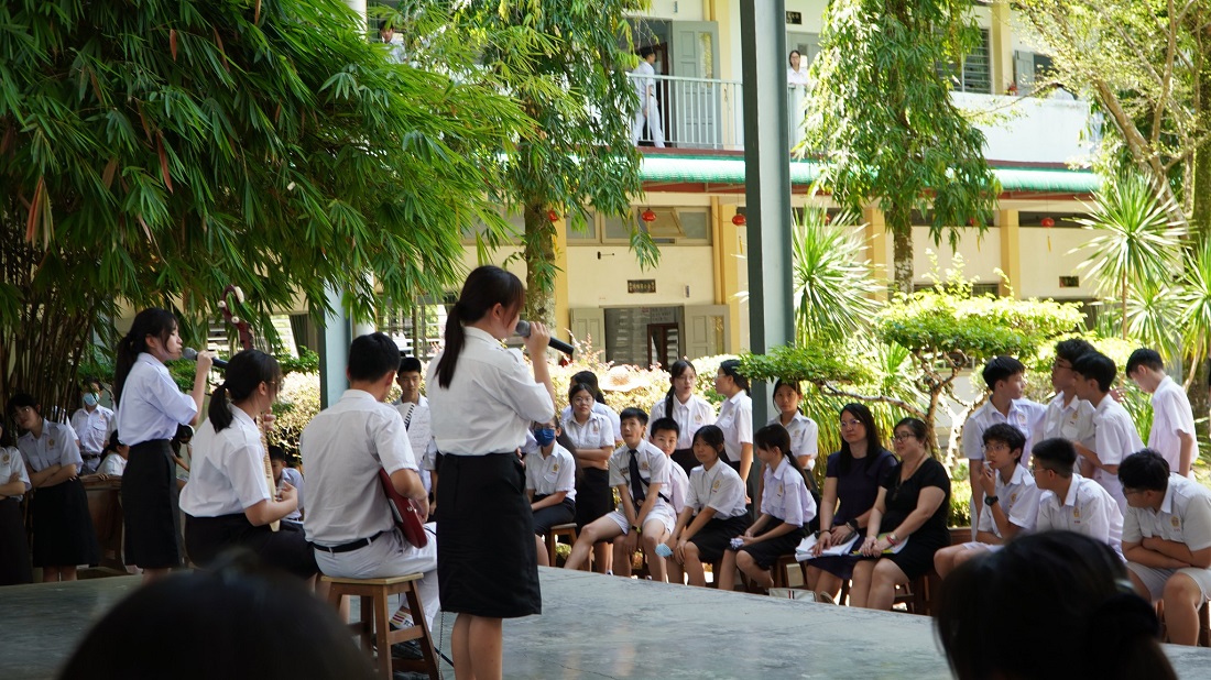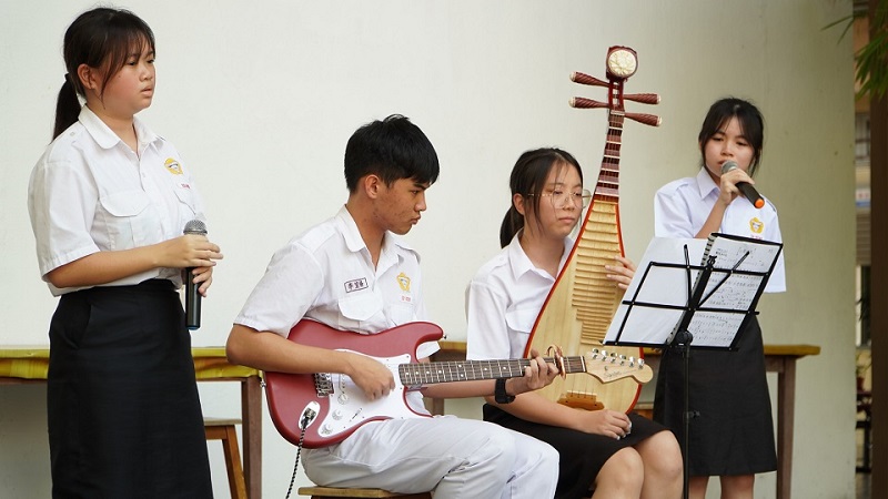 华语月表演 2025年8月13日发布 配合华语月,陈丽华老师日前带领数名同学于第二次休息时间为大家呈献一场简短却精彩的演出。 首先,由高二理的范文康同学与黄拔政同学进行《再别康桥》的诗歌朗诵,声情并茂,饱含诗意。接着,高一商二的黄欣意同学与高二理的陈嘉莹同学深情演唱《水调歌头》、《游山恋》等曲目,由高二理的丘安淇同学与李宣锋同学伴奏,琴声悠扬、歌声动人,赢得现场阵阵掌声。 摄影:张礼文(高二理) “教享悦(二)”:跨领域交流 · 激发创意课堂新火花