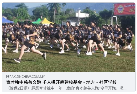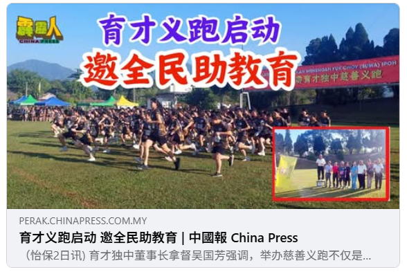 感谢《星洲日报》对本次活动的关注与报导。 新闻链接:https://perak.sinchew.com.my/news/20250802/perak/6748705 《中国报霹雳人》报道:2025年慈善义跑