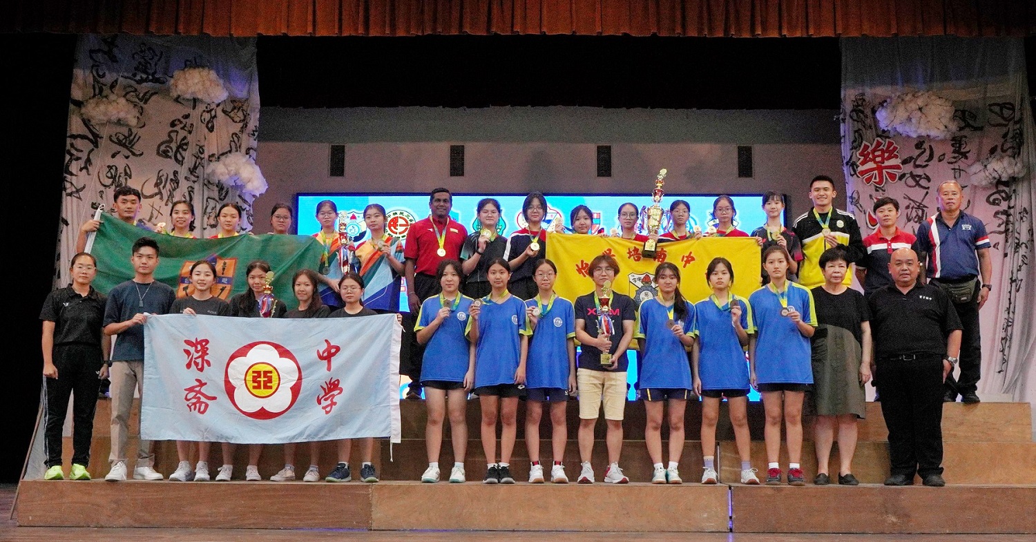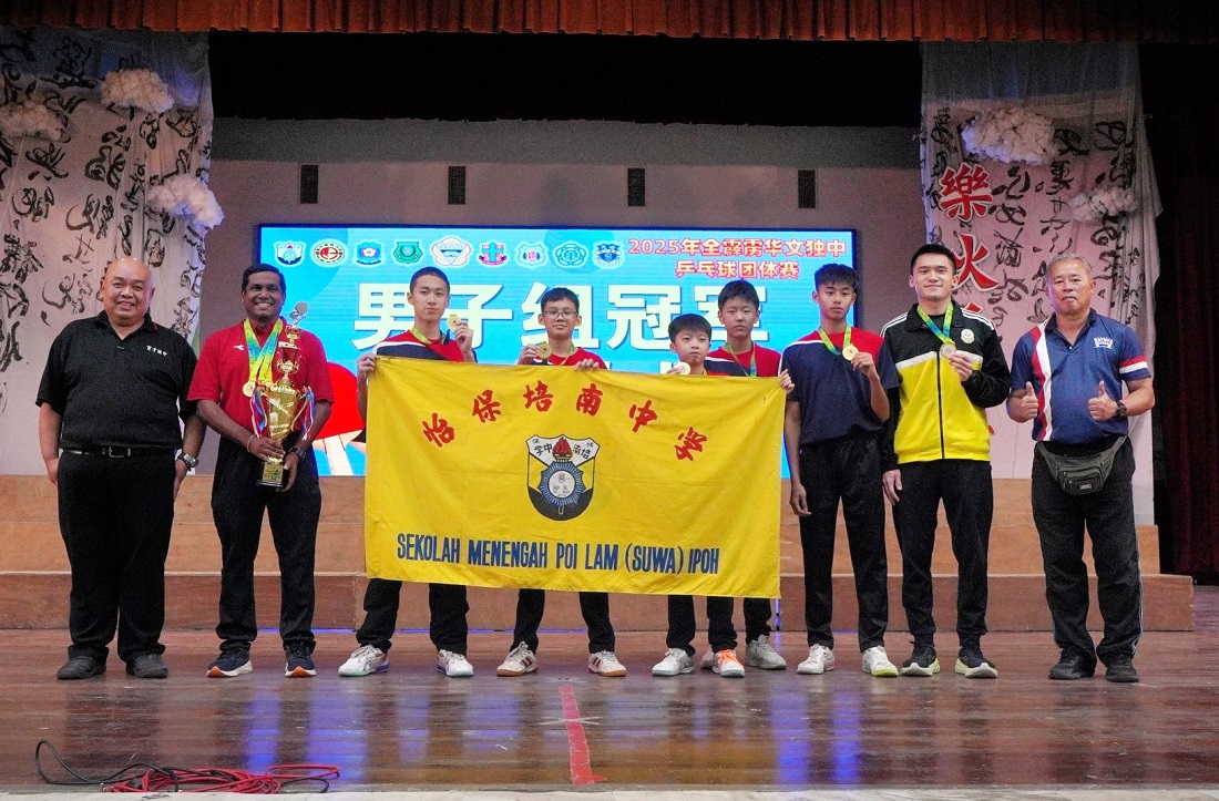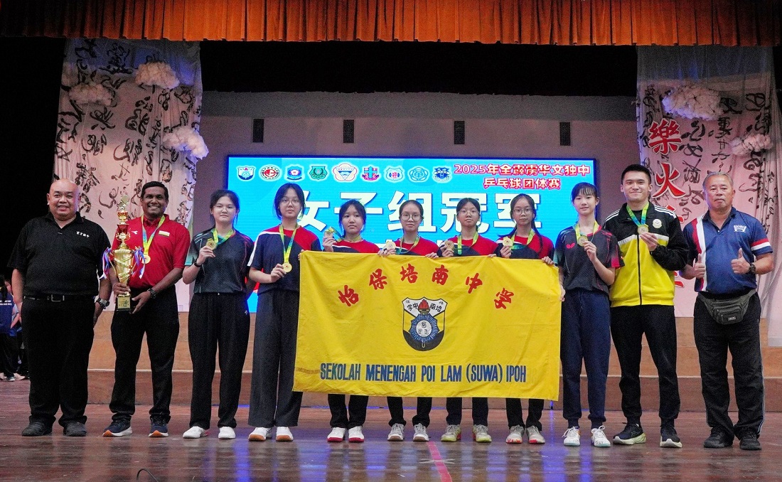2025年全霹雳华文独中乒乓球团体赛圆满落幕 2025年8月8日发布 【 点击链接前往脸书浏览更多精彩照片 » Part 1 | Part 2 】 . 由本校主办的2025年全霹雳华文独中乒乓球团体赛已经圆满落幕,来自霹雳州九所华文独立中学的逾百位乒乓好手,于8月5日至6日在本校杨金殿礼堂比拼球艺。男子组和女子组冠军由培南独中获得,本校女子队获得季军。 摄影:杨伟恒(高二商一)、王子贤(高二商二)、冯悦莹(初二忠)、吴晓晴(初二孝) . 开幕仪式场面热烈隆重,荣幸邀请到本校董事长拿督吴国芳与霹雳育才校友会理事长陈金灼莅临主持,并以开球仪式为本届赛事正式揭开序幕。本校黎镇光校长与霹雳育才校友会总务廖庭芳亦陪同出席,共襄盛举。 多所友校校长也亲临现场,为带队老师、教练与参赛选手加油打气,展现友校之间深厚的情谊与对体育精神的支持。出席的校长包括:金宝培元独中刘婉冰校长、怡保深斋中学杨来福校长、江沙崇华独中庄织华校长、实兆远南华独中校长陈丽冰博士、怡保培南独中林柔清校长、安顺三民独中胡永铭校长、太平华联独中王明裕校长、班台育青中学郭花妹校长。 本届赛事不仅是一场竞技的比拼,更是各校交流切磋、凝聚情谊的平台。 两天的赛事精彩纷呈,球员们奋力拼搏,展现出高超球技与团体精神。恭喜所有获奖队伍,也衷心感谢所有带队老师、教练、参赛球员以及一众工作人员的辛勤付出。 【 男 子 组 成 绩 】 冠 军:培南独中 亚 军:三民独中 季 军:培元独中 殿 军:深斋中学 【 女 子 组 成 绩 】 冠 军:培南独中 亚 军:育青中学 季 军:育才独中 殿 军:深斋中学 男子组冠军:培南独中 . 男子组亚军:三民独中 . 男子组季军:培元独中 . 男子组殿军:深斋中学 . 女子组冠军:培南独中 . 女子组亚军:育青中学 . 女子组季军:育才独中 . 女子组殿军:深斋中学 . 摄影:张迪信(高二文) 【 点击链接前往脸书浏览更多精彩照片 » Part 1 | Part 2 】 . . 《星洲日报大霹雳》报道:2025年慈善义跑