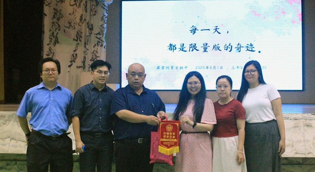 澳门栢蕙青年义务工作协会到访本校 2025年8月10日发布 本校近日迎来来自澳门栢蕙青年义务工作者协会的代表团,进行一场充满温度与内容的交流访问会。 在交流会上,本校黎镇光校长致词时表示,该协会团长锺志业先生与育才独中有着深厚的情感,对本校宿舍温馨的氛围更是念念不忘。他也提及,去年与刘国荣副校长曾赴澳门参访七所大学与两所中学,进一步加深了两地教育的了解与连结。他期望此次短暂的交流,能让在场学生满载而归。 董事长拿督吴国芳也在致词中表示,非常荣幸迎来来自澳门的朋友。随着澳门与广州大桥通车,全中国经济发展日益蓬勃,正是学生了解中国与世界的良好契机。他希望此次交流,能让学生拓展视野、掌握更多升学资讯。 澳门栢蕙青年义务工作协会团长锺志业则在交流会上幽默又真诚地分享,他认为育才是一所非常亲民的学校,自称是“半个育才校友”,尤其喜爱学校的饭堂,每次来马来西亚都念念不忘。他也表示,怡保的华人文化保存良好,希望将这份精神带回澳门,进一步推动中华文化传承。 在交流会上,文化组报告员吴家曦与李嘉恩为在场师生简要介绍澳门文化,包括历史背景、语言文字、宗教信仰、建筑风格、世界文化遗产、节庆与习俗、艺术与表演、博彩与娱乐、美食文化及知名文化盛事,让学生更全面了解澳门的城市特色。 升学组报告员张俊轩则详细介绍澳门的高等教育体系。目前澳门共有10所高等院校,包括澳门大学、澳门科技大学、澳门城市大学、澳门理工大学、圣若瑟大学、澳门旅游大学、澳门镜湖护理学院、澳门管理学院、澳门保安部队高等院校及中西创新学院。 他指出,澳门高校的申请条件相对简单,只需持有高三毕业证书及统考成绩即可报名。个别院校的具体要求可参考各校官方网站。此外,澳门目前开设超过300项课程,涵盖9个学术范畴及36个专业类别,提供多元学习方向。澳门高等教育的学年一般从9月至翌年7月,分为上学期(9月至翌年1月)与下学期(2月至7月),8月为暑假,部分研究生课程则不受学期限制。 交流会最后,由黎校长播放本校校园介绍影片,并特别收录对董事长拿督吴国芳的专访,谈论马来西亚华文教育的脉络与发展。会后,在场的高三学生也积极与协会成员进行简单交流,深入了解升学与文化资讯。 出席本次交流会的本校代表有董事长拿督吴国芳、董事会总务黄伟生、副总务王瑞国博士、张玉和、张文义、董事黄成朱、董事会执行秘书余依程、校长黎镇光、副校长刘国荣、联课活动处主任刘誌中、教务处主任胡丽珍、副主任曾伟文、辅导处主任许环伟、训育处主任王淑媚、宣教处主任吴君仪、图书、文物及校史馆主任吴鄢如、行政电脑处副主任古振霆、体育处主任王英健、事务处主任锺国华、会计部主任王诗雯、校长秘书潘晓晶。 澳门栢蕙青年义务工作协会的代表有顾问甄庆华、团长锺志业、副团长陈嘉成、随团领队何佩琳、随团秘书锺嘉瑜、摄制队导演余志云、副导演尹倩仪、制片曾政延、摄影余子杰与雷安妮、升学组组长李绮玲、报告员张俊轩、赵海欣、资料整理欧阳华欣、文化组组长潘朗晴、报告员吴家曦与李嘉恩、总务陈嘉俊、工作人员许嘉慧及谭颖诗。 此外,霹雳南海会馆代表亦受邀出席,包括总务麦政中、康乐组主任兼青年部秘书长卢梓荧、理事陈栋昇。 本次访问在温馨融洽的氛围中圆满结束,不仅加深了马澳之间的教育交流,也为学生打开通往澳门升学与文化探索的新视野。 2025年校内华语演讲比赛得奖名单