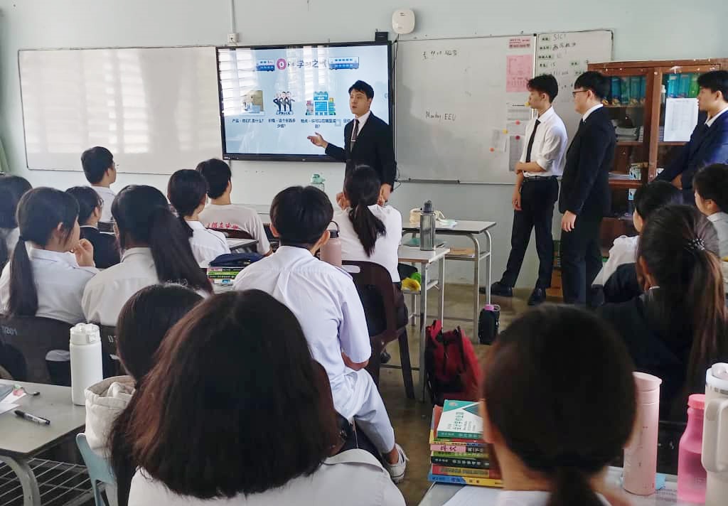 本校2022年汽修班毕业校友潘礼杰返校分享 2025年8月10日发布 本校2022年汽修班毕业校友潘礼杰日前偕同三位拉曼大学同学 — — 林明宏、彭永康及赵明浩回到母校,为商班学弟妹带来一场精彩分享。 他们呈现了在大学完成的商业市场报告,主题为营销组合(Marketing 4Ps),不仅强化了同学们对市场营销的概念理解,还穿插分享了个人的升学历程与大学生活点滴,让现场气氛生动而充实。 潘礼杰校友目前就读于拉曼理工大学(TAR UMT)工商管理荣誉学士学位。通过这次交流,他与团队希望帮助学弟妹更深入地了解大学学习内容,并鼓励大家积极规划未来,勇敢逐梦,迈向属于自己的升学之路。 2003年文美班毕业校友杨松耀回校交流