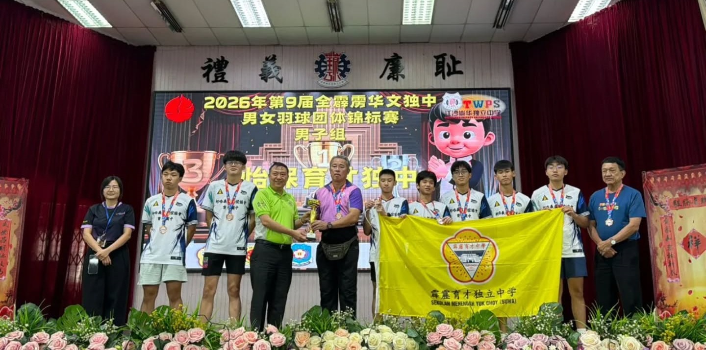 本校代表于 “2026年第9届全霹雳华文独中男女羽球团体锦标赛” 中 恭喜本校羽球队于“2026年第9届全霹雳华文独中男女羽球团体锦标赛”中,获得女子组冠军及男子组季军。 女队代表:吴紫绮、廖可儿、陈苡茜、韦萱宇、戴菡馨 男队代表:蔡凯铭、杨立汶、黄涌升、张铭恒、曾嘉威、朱凯正、梁琦卓 这项赛事由江沙崇华独中主办,于3月31日至4月2日进行。 在本次赛事中,男子团体于半决赛惜败,但在季殿赛中奋力拼搏、成功反弹,最终夺得季军;女子团体则表现亮眼,力压群雄,一举摘下冠军桂冠,并成功取得出征全国独中赛事的资格! 优异成绩的背后,是队员们日复一日的刻苦训练与坚持不懈的努力。他们在赛场上展现出的拼搏精神与团队默契,令人深感欣慰与感动。 同时,衷心感谢顾问兼指导教练邹国强老师的悉心指导,以及体育处主任王英健老师、助理锺微丝老师与梁静儿老师的全程带队与支持。 这份荣耀亦属于每一位默默付出的家长。期望同学们在求学路上不仅追求学术进步,也积极参与各类活动,充实自我,让中学生涯不留遗憾,绽放属于自己的精彩! 2025年SPM成绩放榜