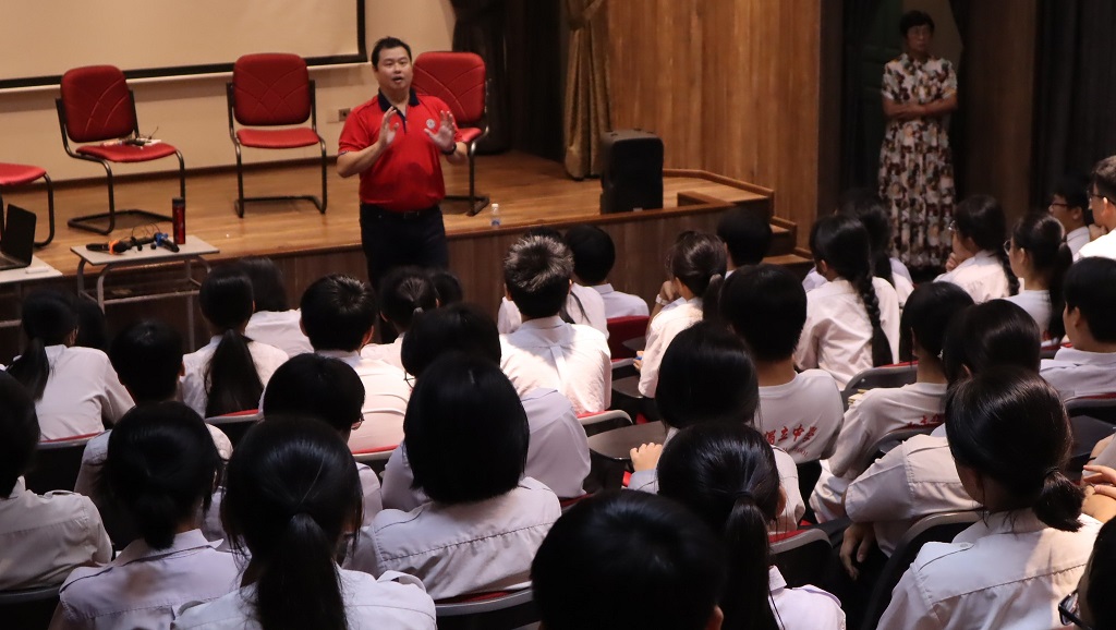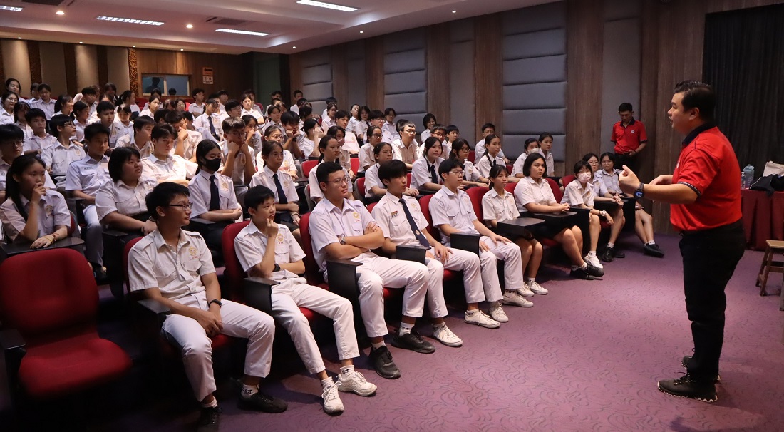 青少年艺术坊(YCA)干部培训营宣讲 2025年5月24日发布 配合即将来临的学校假期,校方与青少年艺术坊(YCA)日前携手举办干部培训营。YCA教官吴值毅、胡慧梵及许伟万日前莅临本校,实地勘察活动场地,并为全体营员进行培训前的宣讲与动员,激发士气。 由于早前疫情期间行管令影响,学会活动一度面临青黄不接与干部断层的问题。为此,本校积极推动各类培训计划,强化干部素质与活动策划能力,双向并进,全面提升学会运作的深度与广度。 深斋中学代表及新邦波赖培英华小董事长胡喜祥到访本校交流