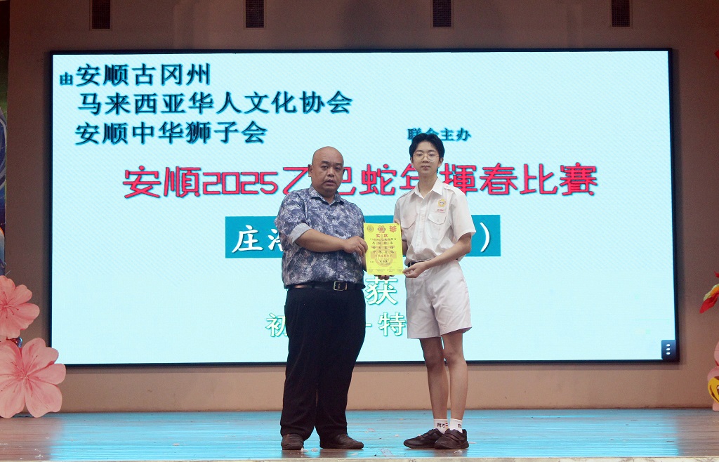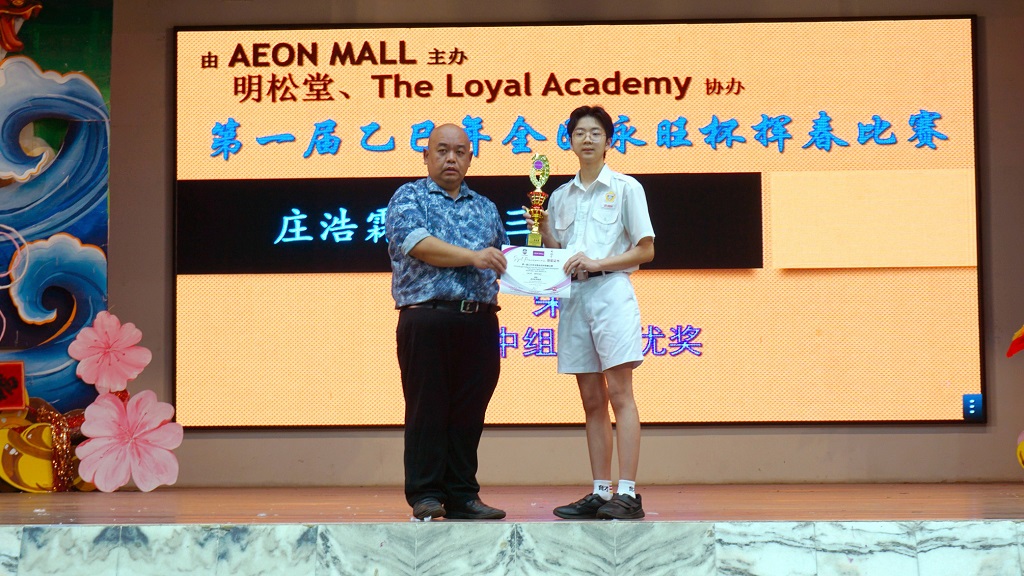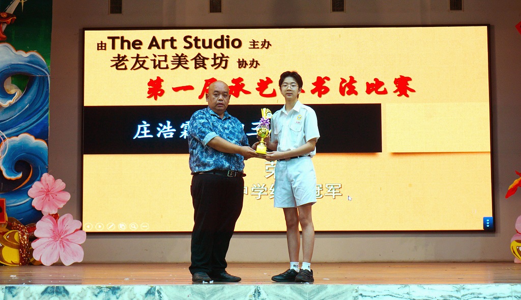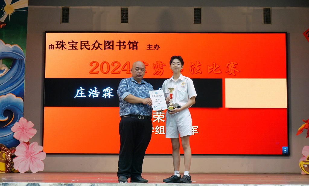 庄炳棋、庄煜棋、庄浩霖参加第4届春节《堂号》书法现场比赛获奖 庄浩霖也在多项书法比赛中获奖 本校庄炳棋同学(初一信)、庄煜棋同学(初一信)和庄浩霖同学(初三信)在校外书法比赛中载誉而归,其中庄浩霖同学更是在多项书法比赛中笔走龙蛇,挥毫泼墨,取得丰硕成果!其热爱书法,踊跃参赛的举动,让人欢欣鼓舞! 2025年全国第4届春节《堂号》书法现场比赛(霹雳华校校友会联合会主办) 庄浩霖:学生组 亚军 庄煜棋:学生组 季军 庄炳棋:学生组 优胜奖 摄影:霍晓暄(高一商二)、郑汶雯(高一商一) 【庄浩霖参加多项比赛获奖】