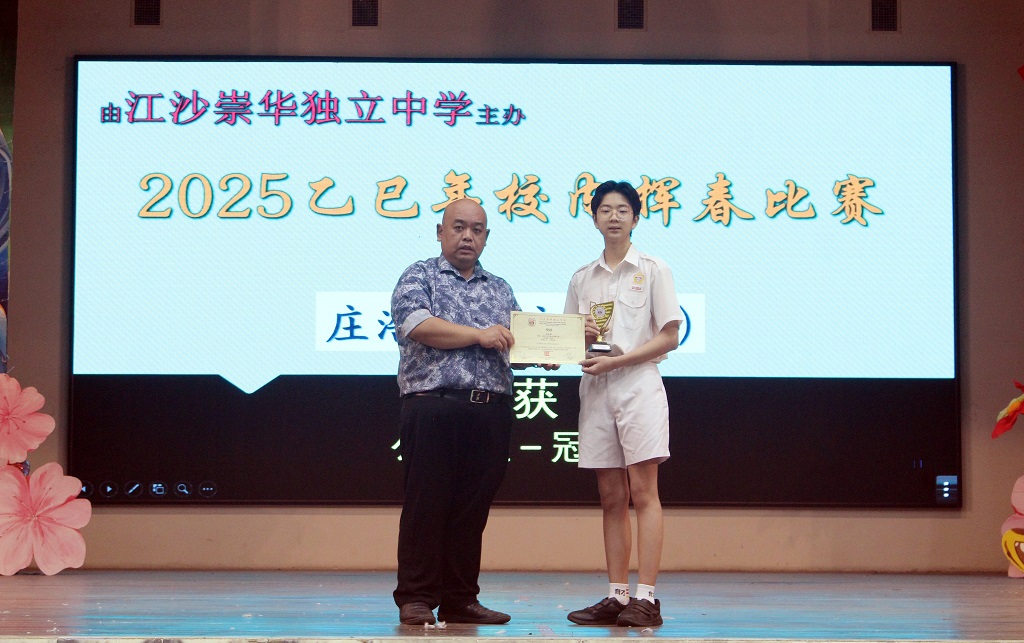 本校校友欧政东、欧政毅捐赠哈蜜瓜予教职员 2025年3月19日发布 一日育才人,终生育才人! 本校感谢校友欧政东与欧政毅捐赠的哈蜜瓜,让教职员们吃在嘴里,甜在了心里! 校友简介: 欧政东校友:2019年高三商一班毕业生,2024年毕业于上海交通大学 欧政毅校友:2020年高三文美班毕业生,现就读于东京设计专门学校 本校黄玮庆和陈玮捷参加《南洋商报》2025年“蛇来运转”新年短视频创作比赛获得优秀奖