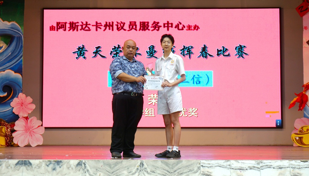 刘咏歆参加第八届未来演说家系列活动 荣获全球总展演银奖 本校刘咏歆同学(初三信)同学代表马来西亚参加“第八届未来演说家比赛”,并在赛事中脱颖而出,在全球总展演决赛中一举摘银,为校争光! 本届展演是由中国中华儿童文化艺术促进会青少年艺术教育专业委员会主办,除了中国当地,还吸引了美国、加拿大、日本、马来西亚、泰国、印尼等海外地区,近10万名青少年参加比赛。 刘同学在演讲领域默默耕耘,聆听老师的指导,并且勤于锻炼,逐渐掌握要领。值得一提的是,她曾在2023年的全球总展演比赛荣获铜奖,而今获得银奖,其精益求精的态度,值得大家为她鼓掌! 摄影:霍晓暄(高一商二)、郑汶雯(高一商一) 华乐团4月19日举办《樂火重生》演奏会