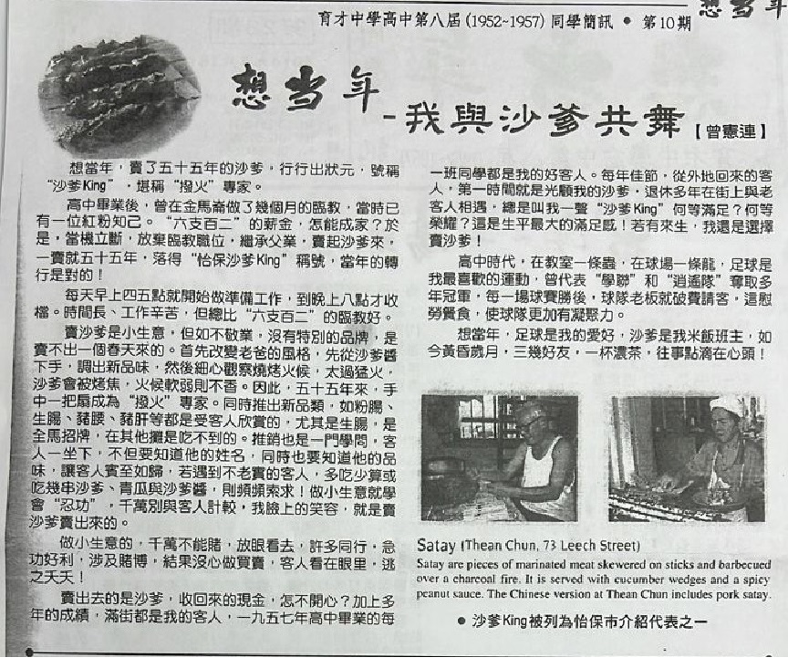 曾宪连先生:怡保“沙爹King”的育才人情怀