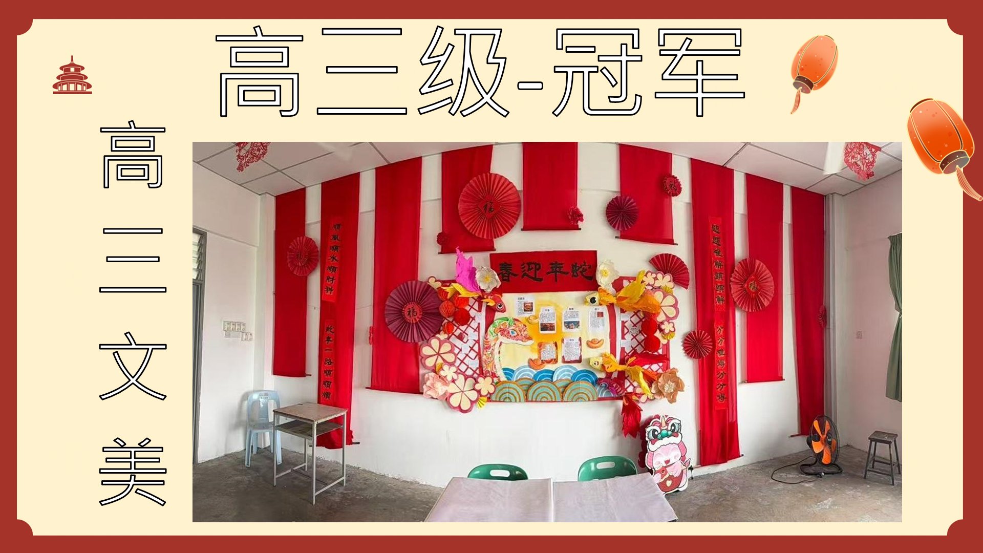2025年班级新春装潢比赛 为迎接新春,本校联课活动处举办了班级新春装潢比赛。各班都发挥创意,装点教室,布置春节氛围,让校园处处洋溢着节日的喜庆。快来看看从各级中脱颖而出的精彩佳作,感受浓浓的年味吧!