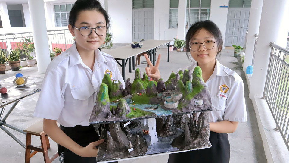 学生发挥创意制作地理模型作品 2024年12月12日发布 本校高一商一班和高一文美班的同学日前分成小组,在地理科任纪瑞芬老师的督促下,耗时三个星期把所学的地理知识与天马行空的想象融合,创作出一件件让人“惊艳”的地理模型作品。 同学们展现了他们强大的手作能力、创新能力,塑造出了精美绝伦的银河系、喀斯特地形、褶曲断层、月球、海岸地形、冰河地形、牛轭湖、大气的垂直结构、生态系统、水循环、火山地形。 2024年宿舍惜别晚会