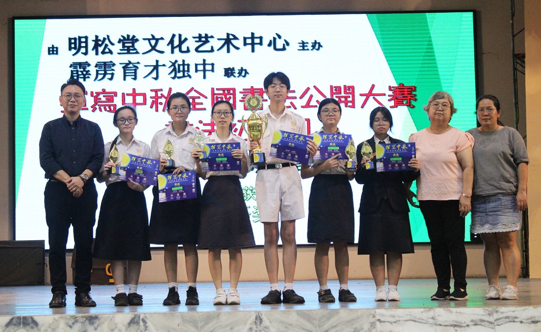 庄浩霖参与多项书法比赛得奖 本校初二信班的庄浩霖同学于日前参加多项书法比赛,并在比赛中夺得奖项,载誉归来! 1)第33届华文硬笔书法比赛(马潮联青主办):初中组 第一名 2)113年海外华侨学生书法比赛(台湾华侨救国联合总会主办):银奖 3)第二届北马孝道书法比赛(孝道化基金会主办):中学组 特优奖 4)道德经书法比赛(槟城州政府教育局主办):卓越奖 摄影:李国铭(高一文)、陈雅文(初三仁)、霍晓暄(初三信) 2024年挥写中秋全国书法公开大赛:初中组 二等奖、佳作奖、高中组 佳作奖