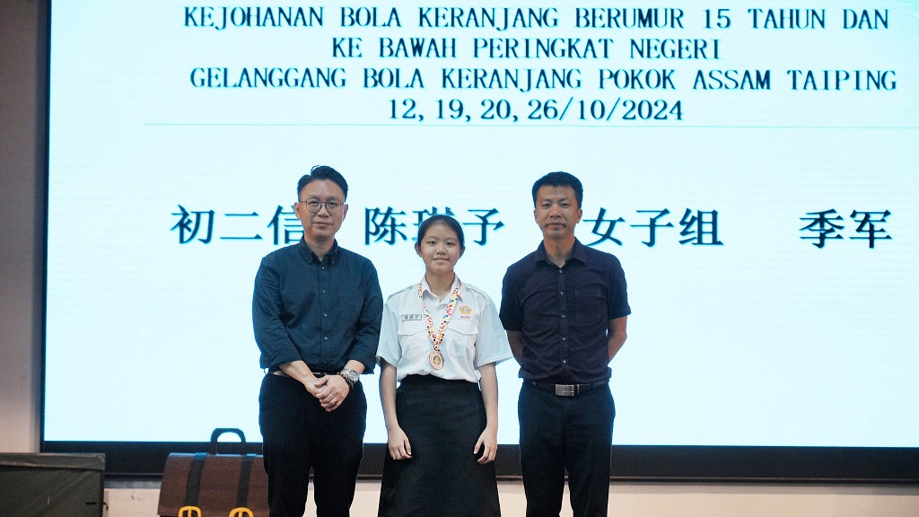 Kejohanan Bola Keranjang Berumur 15 Tahun dan ke bawah Peringkat Negeri 本校初二信班陈琪予同学于日前参加在 Gelanggang Bola Keranjang Pokok Assam Taiping 举行的“Kejohanan Bola Keranjang Berumur 15 Tahun dan ke bawah Peringkat Negeri”,并在该项比赛中获得女子组季军。