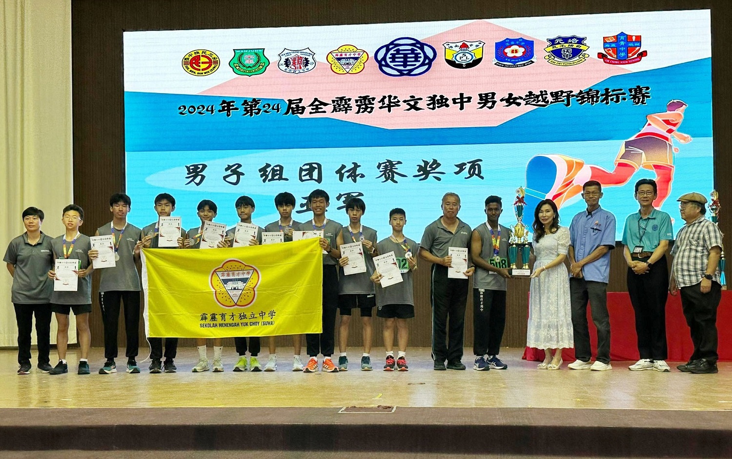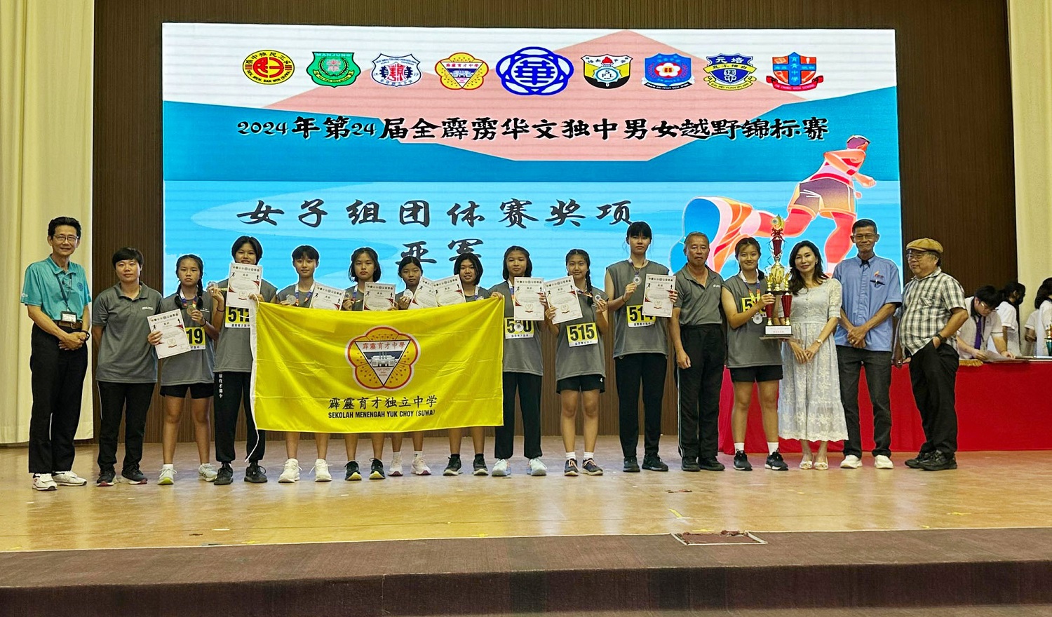 2024年第24届全霹雳华文独中男女越野锦标赛 本校男女运动员在太平华联独中举行的“2024年第24届全霹雳华文独中男女越野锦标赛”表现优异夺得奖牌,荣获男女团体亚军!校方感谢运动员们的努力付出,为今年的校庆带来了最好的礼物;同时也感谢体育处的带队和教练的训练,让运动员们有所发挥,夺得奖项! 男子组团体赛 亚军: 田浩扬(初一孝)、蔡凯铭(初一爱)、林洵愷(初三孝)、许文康(初三仁)、 张宏泽(初三爱)、吕伟鸿(初三爱)、邹宇轩(高一理)、黄皓檠(高一商2)、 陈名峰(高二商2)、沙米邓(高三文美) . 女子组团体赛 亚军: 何倩颐(预备班)、马萱桐(初二忠)、陈苡茜(初二孝)、吴雨晴(初二信)、 许睿淇(初二信)、郑芷杉(初二信)、廖可儿(初三忠)、许卉珏(高一理)、 杜敏镟(高一商1)、许恩慧(高二理)