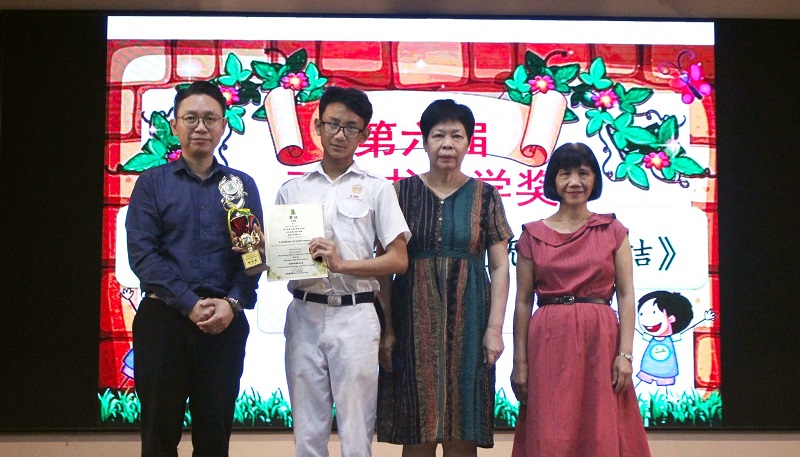 苏德耀参加第六届“王弄书文学奖”散文创作比赛 本校高二文美班的苏德耀同学日前参加由槟城菩提学校董事会主办的第六届“王弄书文学奖”散文创作比赛,荣获中学组特优奖,其坚持不懈,努力积累而终有所成,取得荣誉,让大家为他感到骄傲。 苏德耀的获奖作品是《若世界是无数个结》,指导老师是李丽珍老师。苏同学表示,从参与比赛至领奖,时隔已有半年,当他得知获奖消息时,心中欣喜若狂,长达半年之久的期待凝固在了这一刻,汗水与坚持如久旱逢甘霖。 他感谢菩提中学主办这项写作比赛提供大家一个参与平台,也感激李丽珍老师的悉心指导,让他有机会在比赛中破釜沉舟。他表示,立志欲坚不欲锐,成功在久不在速,他会再接再厉,来年再战。 刘国荣副校长在周会上代颁发奖杯及奖状,教务主任胡丽珍老师和李丽珍老师一同上台分享得奖喜悦。刘副校长恭喜苏同学获奖,赞赏他勇于挑战,踊跃参加各种活动及比赛,并且鼓励同学们勇于涉猎各个领域,从中探索自己的潜能。 摄影:甘征晖(高一理)、吴卓霖(高二文美) 本校联办2024年“挥写中秋”全国书法公开大赛 圆满举行