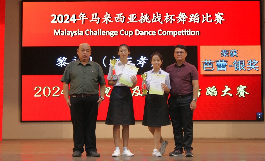 本校两名学生参加2024年马来西亚挑战杯舞蹈比赛 荣获独舞项目金奖和银奖 本校初三孝班的黎永恩同学及陈柯彤同学日前参加“2024年马来西亚挑战杯舞蹈比赛”(Malaysia Challenge Cup Dance Competition),荣获赛事中独舞项目的金奖和银奖。 荣获金奖的黎永恩及荣获银奖的陈柯彤表示,能够在舞台上顺利完成舞蹈表演并且获得奖项,让她们感到无比荣幸和激动。 她们表示,获得奖项不仅是对她们个人努力的认可,更是对所有支持、鼓励、陪伴她们走过每一个舞步的人的感谢。在未来的舞蹈之路上,她们将继续努力,不忘初心,砥砺前行。 黎镇光校长表示,同学能够坚持自己的兴趣爱好,并且愿意额外花时间不断地自我鞭策,让校方感到欣慰。 他表示,除了校内的活动,希望同学们多阅读报章,关注一些与自己兴趣相关的民间社团组织活动,尝试参与其中,拓展本身在学校以外的体验及际遇,增广见闻,再把经验带回给校内与师生们分享,相信在交流互惠下能够给学校带来整体的提升。 摄影:张迪信(高一文)、杨伟恒(高一商1) Jazz-Up Your Hard Rock Tee Contest “硬石餐厅T恤设计比赛”:安慰奖
