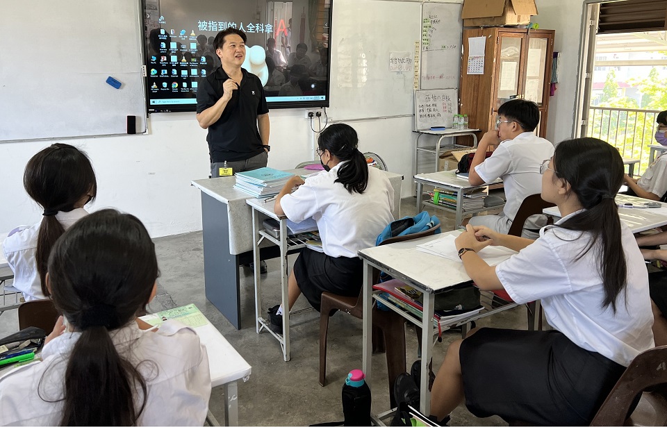 1994年毕业校友廖学健回校分享 2024年7月6日发布 本校1994年毕业的廖学健校友日前回到母校,与学弟学妹们分享交流。 廖学健校友在当年的班主任李绣秀老师和宣教处主任吴鄢如老师带领下,与黎镇光校长拜会,并参观了校园、宿舍和李莱生图书馆。 与廖校友一同前来的还包括台湾慈济中学的初中部教师张佩琪老师(也是廖校友的妻子)、高中部教师何美燕老师及廖校友的儿子。 廖校友为初三仁班及初三忠班分享了他在中学时期的校园趣事和他到台湾读大学时的点点滴滴,以及大学毕业后在慈济大学医学院担任研究员的经验。他也勉励学弟学妹们要用功读书,为自己创造美好的将来。 另一边厢,张佩琪老师和何美燕老师为初三仁班分享有关理科班和文科班的升学方向等资讯。 随后,廖校友也在吴鄢如老师的安排下到李莱生图书馆接受本校学记团的采访。 庄浩霖参加两项书法比赛得奖