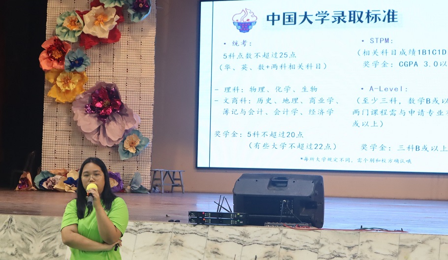 “留华桥” 留学中国升学宣讲 2024年7月12日发布 为了让本校高三的同学在毕业后有更清晰的升学方向,本校辅导处于7月11日安排了一项留学中国的升学辅导,邀请到本校2018毕业校友黄旖暄和留华同学会的代表郑诗洁小姐到来给高三同学进行留学中国升学宣讲,介绍中国大学、学杂费、奖助学金、留学申请等升学资讯。 黄旖暄校友已于中国暨南大学毕业并取得工商管理学士学位,而郑诗洁小姐则即将入学中国同济大学数据科学与数据技术科系。 本校 “2024年欢乐探索成长营” 开始接受报名