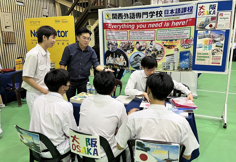 2024年 “为您导航” 升学与辅导教育资讯日 2024年7月14日发布 由本校辅导处和 FSI Center 升学情报联合举办的2024年“为您导航”升学与辅导教育资讯日于7月12日上午9时至下午1时,在杨金殿礼堂举行。这项活动让校内高中部全体学生有机会接触国内外大专学府,以获取升学资讯和辅导,为中学毕业后的升学路作好准备。 参与这项活动的教育单位多达 52 个,他们所提供的课程包括电脑、企管、财经、工程、科技、法律、语文、美术、传播、餐旅、医药等等科系;这些课程又可分为学士学位、文凭、证书、双联课程、学分转移等类别。 本校董事长拿督吴国芳和董事会总务黄伟生先生也抽空出席这项活动,并赠送锦旗予各参展单位,感谢他们前来为学生提供升学资讯。 升学情报中心的升学顾问在活动上为同学们讲解有关升学的选择和须注意事项,并于展览现场为同学们提供升学咨询,以及派送升学指南。 参与展出的教育单位计有: 1. ACADEMY OF BUSINESS MALAYSIA 2. AUG GLOBAL NETWORK 3. BOWEN ACADEMY PLT 4. CILANTRO CULINARY ACADEMY 5. CITY UNIVERSITY OF HONG KONG 6. CLAZ’ROOM COLLEGE 7. CREW LOUNGE MALAYSIA 8. CURTIN UNIVERSITY MALAYSIA CAMPUS 9. DASEIN ACADEMY OF ART 10. ERA TECHNOLOGY COMMUNICATION ART & DESIGN 11. FANTASTIC PASTRY ACADEMY 12. FORWARD COLLEGE 13. FUSIONOZ AUSTRALIA 14. GOLDEN CHEF CULINARY ACADEMY 15. HAN CHIANG UNIVERSITY COLLEGE OF COMMUNICATION 16. IDP EDUCATION LIMITED 17. IGLOBAL ACADEMY 18. INTI EDUCATION COUNSELLING CENTRE JOHOR 19. JM EDUCATION GROUP SDN. BHD. 20. JM EDUCATION GROUP SDN. BHD. 21. KAPLAN HIGHER EDUCATION ACADEMY PTE LTD 22. KLC INTERNATIONAL INSTITUTE 23. LAM WAH EE NURSING COLLEGE 24. LE CORDON BLEU MALAYSIA 25. LUPEICHUN JAPAN EDUCATION CENTRE 26. MALAYSIAN INSTITUTE OF ART 27. MOBIUS ACADEMY 28. MONASH UNIVERSITY MALAYSIA 29. NEW ERA UNIVERSITY COLLEGE 30. OSKANO ACADEMY 31. PENINSULA COLLEGE GEORGETOWN 32. PRO EDU CONSULTANCY RESOURCES 33. RAFFLES COLLEGE OF HIGHER EDUCATION 34. RAFFLES COLLEGE OF HIGHER EDUCATION PTE LTD 35. SINGAPORE INSTITUTE OF MANAGEMENT GLOBAL EDUCATION 36. SUNWAY COLLEGE IPOH 37. SUPER STAR ACADEMY 38. TAYLOR’S UNIVERSITY 39. THE HONG KONG POLYTECHNIC UNIVERSITY 40. THE ONE ACADEMY 41. TUNKU ABDUL RAHMAN UNIVERSITY OF MANAGEMENT AND TECHNOLOGY (拉曼理工大学) 42. UCSI UNIVERSITY 43. UKEC (UNITED KINGDOM EDUCATION CENTRE) 44. UNIVERSITI TUNKU ABDUL RAHMAN (UTAR) 45. UOW MALAYSIA KDU PENANG UNIVERSITY COLLEGE 46. VELFORD ACADEMY 47. 関西外語専門学校 48. NIPPON STUDY CENTRE 49. QUEST INTERNATIONAL UNIVERSITY 50. 留华同学会 51. ASIA PACIFIC UNIVERSITY (APU) 52. SEGI UNIVERSITY COLLEGE 摄影:甘征晖(高一理)、许芷奕(高一商2) . . 2024年国际儿童及青少年舞蹈大赛:芭蕾舞青年组独舞 银奖