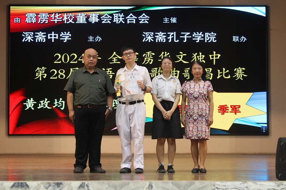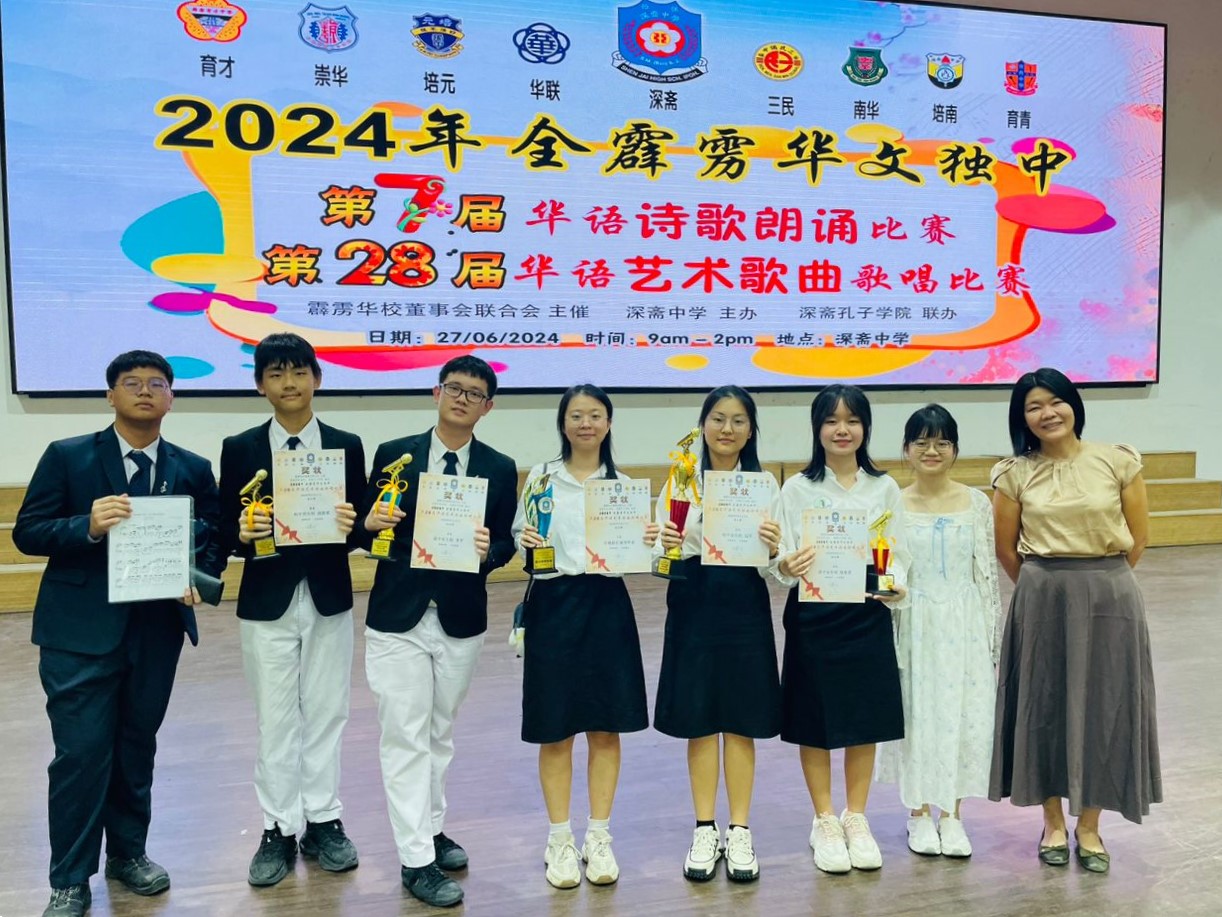 2024年全霹雳华文独中第7届华语诗歌朗诵比赛 暨第28届华语艺术歌曲歌唱比赛 主催:霹雳华校董事会联合会 带队老师:联课活动主任刘誌中老师、陈丽华老师(诗歌朗诵)、周素云老师、李逸辉老师(艺术歌曲歌唱) 【 第7届华语诗歌朗诵比赛 】 高中组 冠军:陈历旗(高二理) 【 第28届华语艺术歌曲歌唱比赛 】 初中女生组 冠军:周颖芯(初三仁) . 【 第7届华语诗歌朗诵比赛 】 高中组 冠军:陈历旗(高二理) . 【 第28届华语艺术歌曲歌唱比赛 】 初中女生组 冠军:周颖芯(初三仁) . . 黎镇光校长在周会上表扬获奖学生 2024年校内学会团体干部培训营