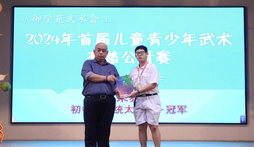 谢维毅参加2024年首届儿童青少年武术套路公开赛 荣获初中组传统太极拳冠军 本校武术团团员谢维毅(初一忠)参加由御学苑武术会主办的“2024年首届儿童青少年武术套路公开赛”,荣获初中组传统太极拳冠军,为校争光。 黎镇光校长在周会上颁奖予谢同学和予以赞赏,希望谢同学再接再厉并坚持这项有益身心的中华传统文化活动。 谢同学感谢父母的支持与鼓励,并且帮忙报名,自己才会鼓起勇气首次站到赛场上。他分享道,小学时已经在练武场地“打滚”,但只限于帮忙教练及其它武术学员进行场地准备工作,本身对武术不感兴趣,也没习武。后来是因为自己的体重飙升,父母担心他的健康而今年起安排他去习武,没想自己的体重下降了,还获得奖牌。如今,他也喜欢上武术,各种武术套路中,他学得最好的是陈氏太极拳。 2024年全霹雳中小学象棋锦标赛:15岁以下组别第4名
