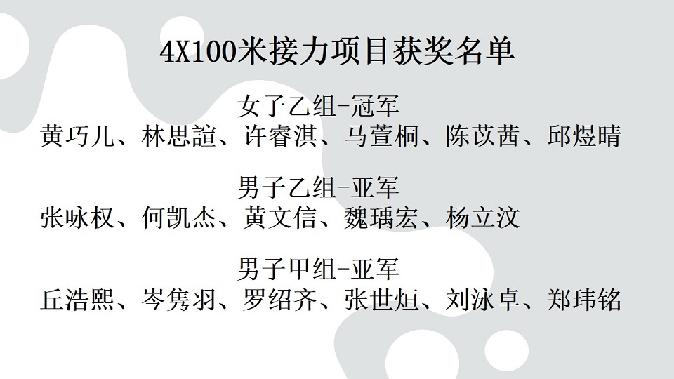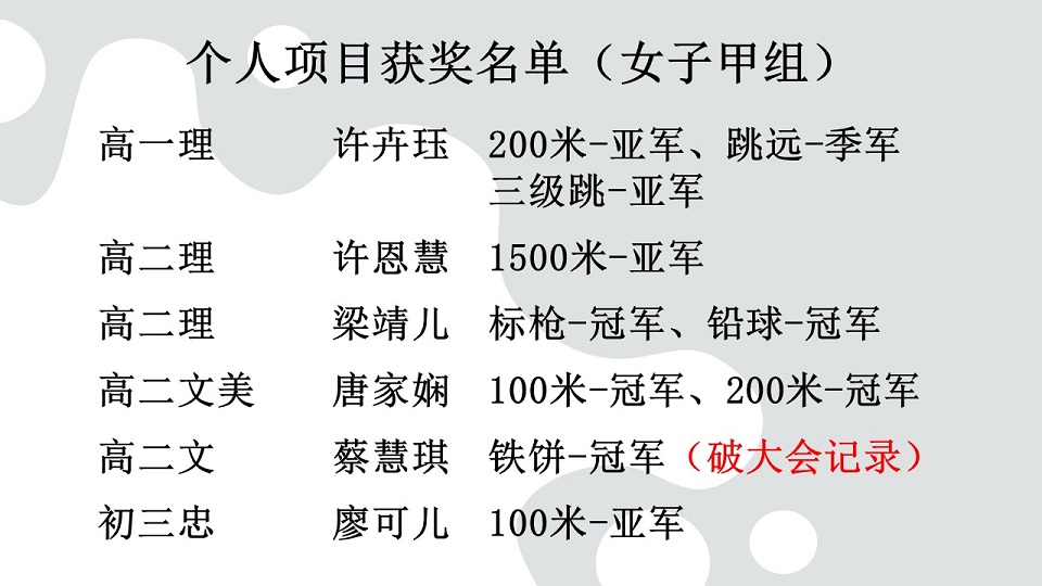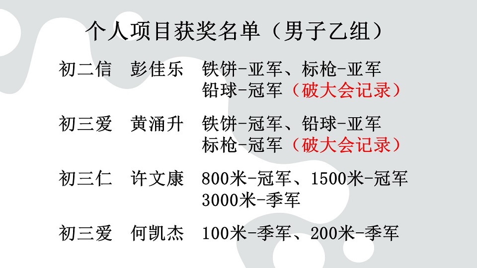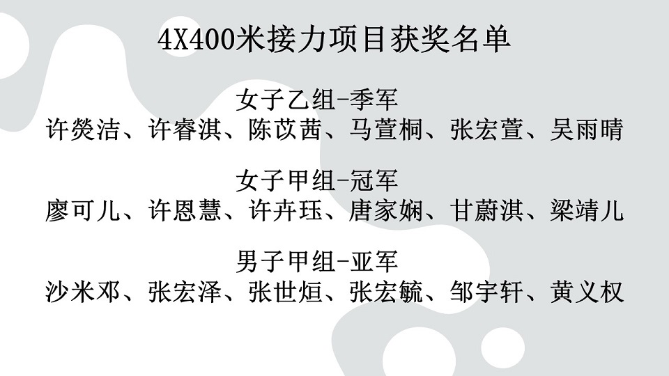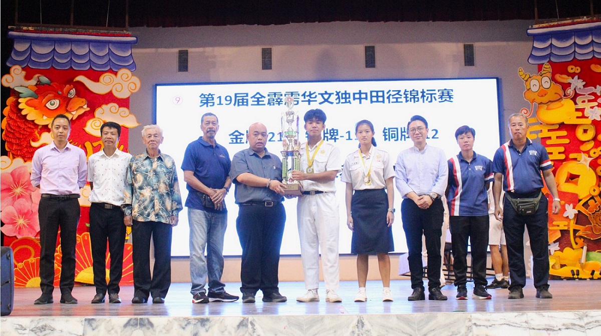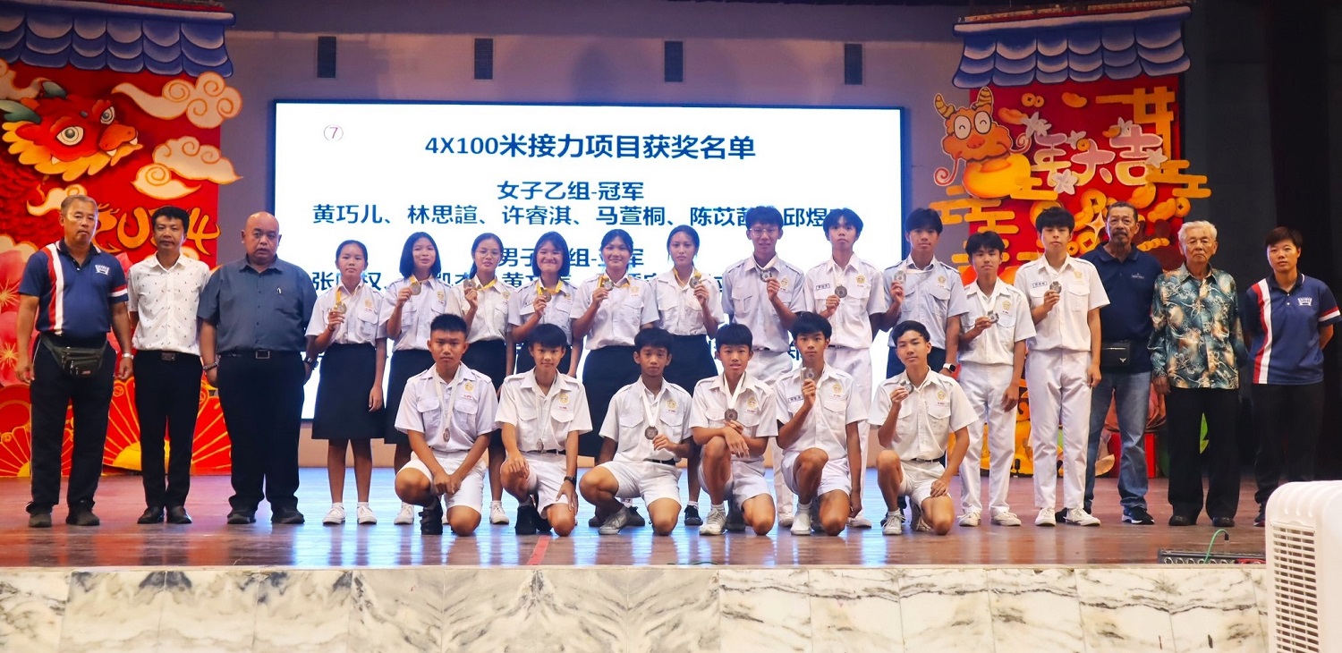 本校以21金11银12铜 夺得“第19届全霹雳华文独中田径锦标赛”全场总冠军 2024年5月1日发布 本校在日前的“第19届全霹雳华文独中田径锦标赛”夺得全场总冠军,本校运动员以21面金牌、11面银牌和12面铜牌(总积分183分)为校争光,可喜可贺! 共有55名运动员在体育处主任王英健老师、体育处助理锺微丝老师、联课活动处副主任李伟盛老师、事务处书记高文谏先生带队下前往霹雳班台育青中学于4月23日至25日所举行的赛会。 为了在此次赛事力拔头筹,本校体育处于今年初便安排校队运动代表们加紧锻炼,各项目运动员在集体训练的情况下培养了更高的士气、凝聚力和战斗力,终于相隔12年后让本校再度夺得总冠军! 其中,更有四名运动员张世烜(高一汽修)、彭佳乐(初二信)、黄涌升(初三爱)和蔡慧琪(高二文)分别在跳远、铅球、标枪、铁饼项目破大会记录。 另外,在4X100米接力项目方面,女子乙组获得冠军,男子甲组和乙组则获得亚军;而在4X400米接力项目,女子甲组荣获冠军,男子甲组荣获亚军,女子乙组荣获季军。 周会上,黎镇光校长代表大会颁发奖牌给获奖运动员。之后,田径赛队长陈证浩(高三商2)和副队长许恩慧(高二理)在全体参赛运动员、带队老师、教练Mr. Jason和Mr. Miao以及各行政部门主任的陪同见证下,把田径赛总冠军常年杯移交校方,由黎镇光校长代表接领并合影留念。 其中两名破大会记录的运动员,黄涌升同学和彭佳乐同学分享道,除了自己的努力,也是因为学校、体育老师、教练、队友和父母的支持和付出,才使到他们能够打破标枪项目的大会记录。比赛当天,他们都非常紧张,还好队友们和老师们给予最大鼓励和相信他们的实力,使他们能够以平常心参赛而获得很好的发挥,最终突破自己。接下来,他们将继续努力训练,以应对全国独中田径锦标赛。 黎镇光校长表示,感谢全体运动员的付出和汗水,让付出得到了回报,载誉归来,为校争光;感谢教练们的训练与指导,让运动员们发挥出最佳表现,勇夺奖牌。同时,感谢带队老师们的安排与照料、感谢热心商家的赞助与支持,以及全体董教职员生的支持与祝福,让运动员们载誉归来,为校争光。 (资料由体育处提供) 摄影:吴芷颖(初三仁)、陈雅文(初三仁) GELC人员到校指导英文老师线上教学技术问题