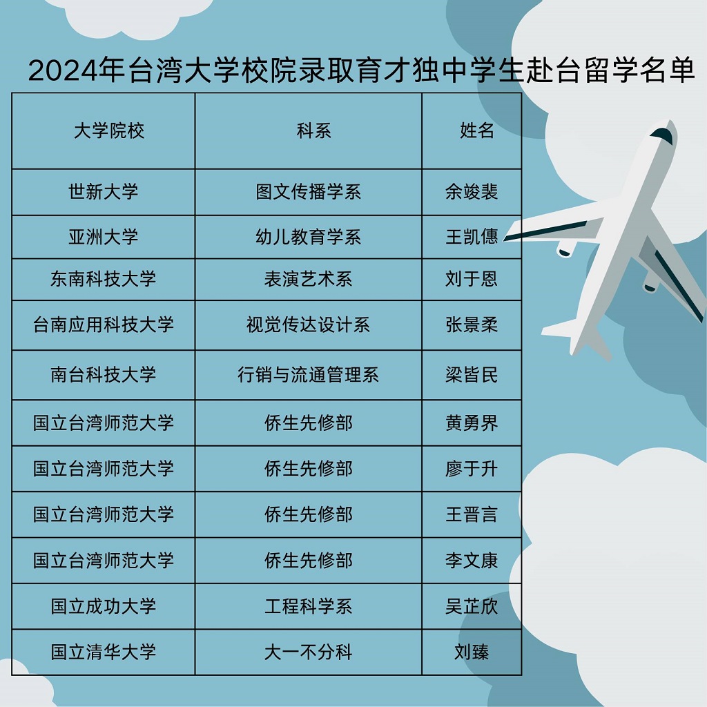 本校33名毕业生获得台湾大专院校录取 2024年4月30日发布 台湾海外联合招生委员会日前公布2024年大学校院录取马来西亚独中生赴台留学名单,本校共有33名毕业生获得台湾大专院校录取赴台深造。 |
