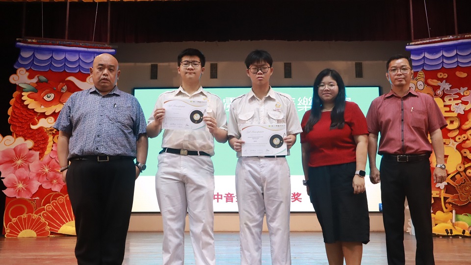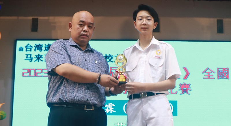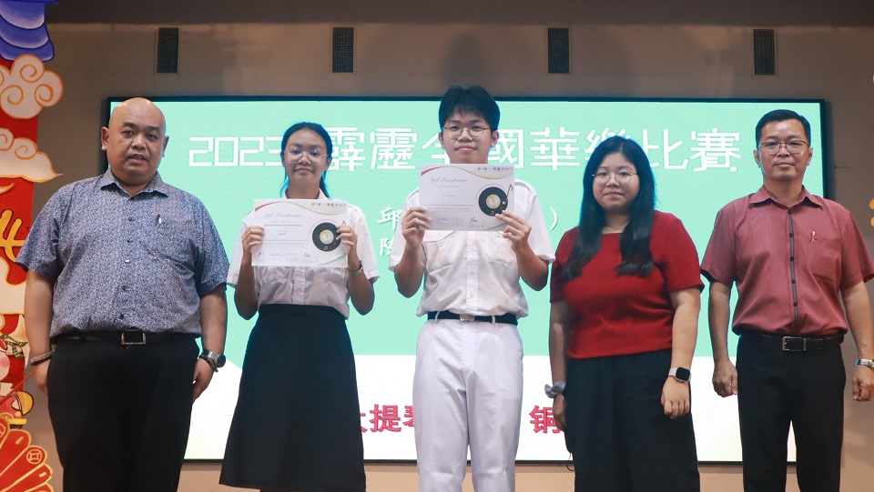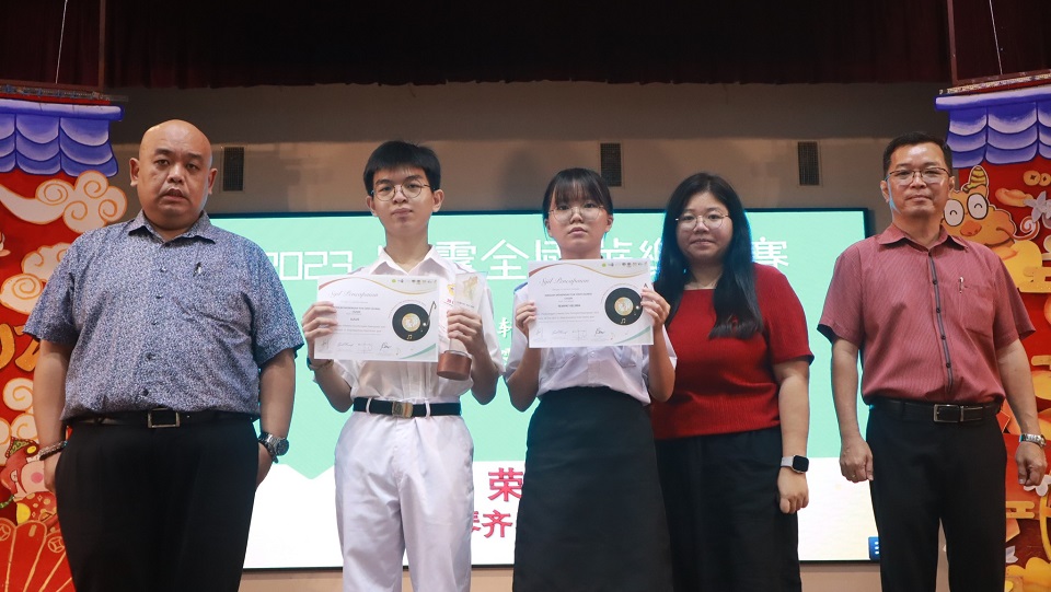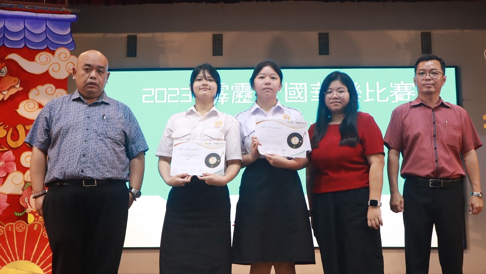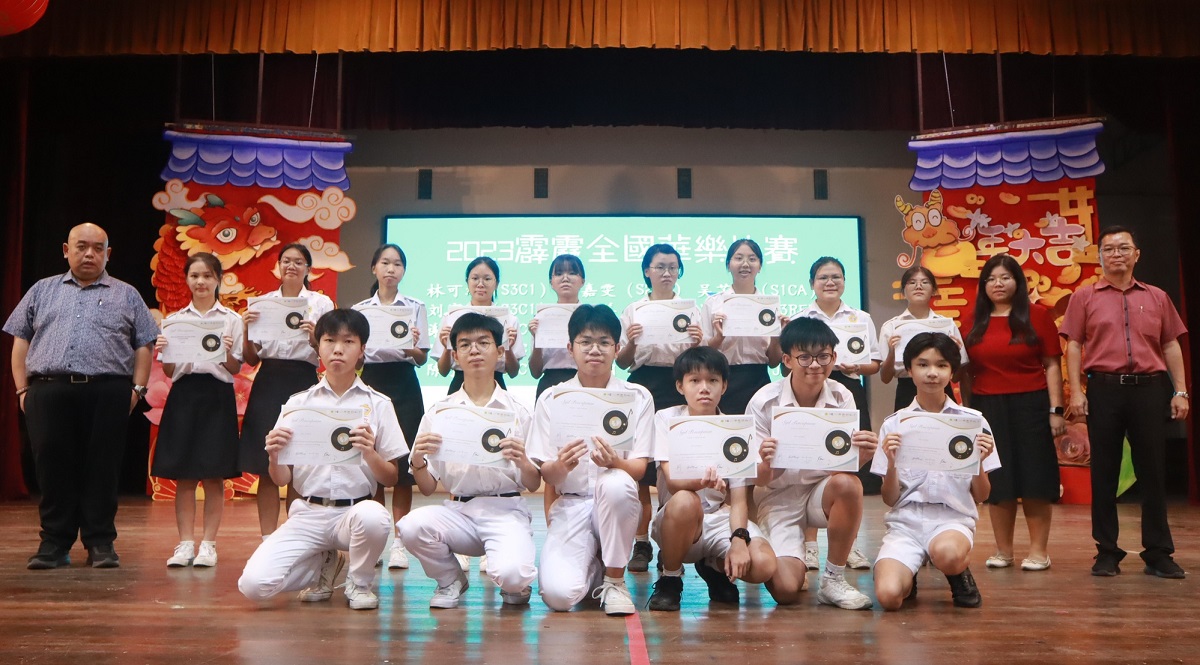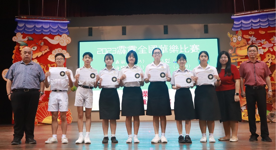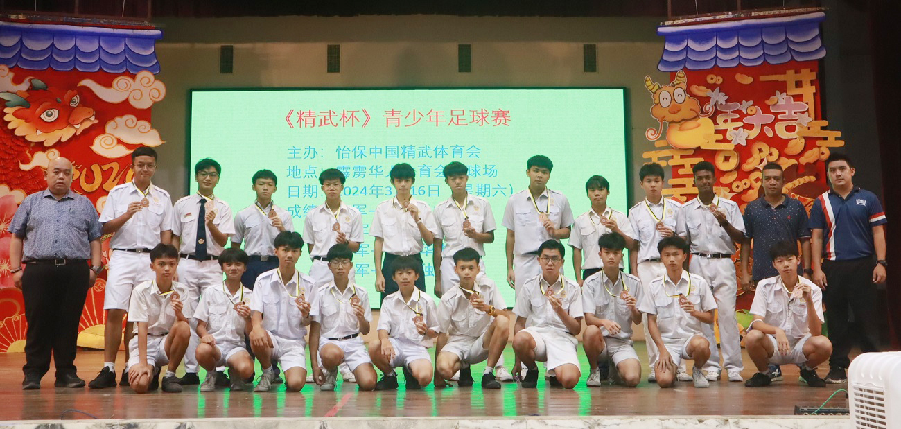 本校华乐团参加2023霹雳全国华乐节华乐比赛获得佳绩 本校华乐团于日前参与由霹雳怡保青年华乐文化协会主办、万里望文化协会协办的“2023霹雳全国华乐节“,并在“2023霹雳全国华乐比赛”中的敲击乐和二胡重奏两个项目,分别荣获金奖和银奖。 演奏敲击乐并荣获金奖的团员是林可绚(高三商1)、岑文越(高一商1)、叶恵心(高一商2)、王依欢(初三仁)以及三名2023年毕业校友林昱諠、赖正韬、莫梓煌,他们凭藉一首《龙腾虎跃》脱颖而出。演奏二胡重奏的团员是覃淼丽(高三文美)、周海瞳(高二商1)、陆欣铃(高二文美)、柯思萃(高一商2)、邝依彣(初三爱)、梁景森(初三信)和林楷翔(初一信),他们凭藉一首《八月桂花遍地开》荣获银奖。 此外,其他华乐团团员也分别在声部合奏、柳琴齐奏、笛子齐奏、大提琴重奏、中音笙重奏、高音笙重奏均荣获铜奖。华乐团团员是在领队老师苏民胜老师和郭欣彤老师的带领下前往参赛。 黎镇光校长于日前在周会上移交奖状并恭喜获奖的华乐团团员,也代表校方感谢团员们的努力付出和教练郭欣怡小姐的指导。 黎校长表示,华乐是中华传统文化代表性艺术之一,团员在勤练演奏技艺的同时,也要提高自身的华乐知识和赏析能力,丰富自己的艺术修养与内涵,那么演奏才能感动聆听者,并且取得更高的艺术造诣,有效的传承华乐这项中华艺术。 此次参赛的华乐团主席周海瞳同学分享道,在赛场上可以观察到其他参赛华乐团体,不管是奏乐时的音准准确度、观赏性、整齐一致的程度、台风等方面都发挥出很高的水平。因此,没想到本校华乐团能够取得不俗的成绩,接下来希望能够与团员们再接再厉,努力的锻炼和磨合,演奏更多动人的曲子。 2024年《精武杯》青少年足球赛:殿军