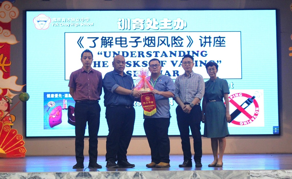 “了解电子烟风险”和“人生交叉点”讲座 2024年4月5日发布 本校训育处日前为全体同学安排了一场以“了解电子烟风险”和“人生交叉点”为主题的讲座,让学生了解吸电子烟的风险以及面对抉择时挣扎又复杂的情绪行为。 上述讲座邀请到两位来自翠林城医院的儿科医生马文彬主讲“电子烟的危害”及心理辅导师吴恺彦小姐主讲“人生交叉点”。此外,翠林城医院的医护人员也一同前来免费给全体教职员做基本的体检,及为部分教职员注射流感疫苗。 黎镇光校长在讲座开始前,联同刘国荣和朱荣熙两位副校长、训育处主任王淑媚老师赠送水果礼篮和锦旗予两位主讲人。 马医师在讲座中给学生们讲解传统香烟的历史及电子烟的发明及进程,并且具体分析传统香烟和电子烟内所含的化学成分,同时强调吸烟和吸电子烟都是在吸入可能危害健康的化学物质,进而影响吸烟者的生理健康,引发性情暴躁、烟瘾、记忆力下降等问题,让大家意识到吸烟的危害性。 另一方面,心理辅导师吴恺彦小姐则透过一则关于品学兼优的少女Candy的故事,在面对爱情、恋爱后情侣的唆使下面对喝酒、吸烟、盗窃等不法行为时,请学生们代入Candy的角色做出抉择,一步步了解每一个决定可能把主角推进深渊或是浴火重生。 她表示,人生会面临许多抉择,虽然在抉择的过程中可能会出错,但是记得自己要勇于做出对的选择并且向值得信赖的人讲述自己面对的问题,让自己在别人的协助下做出转变。 摄影:李紫涵(初二孝)、李岢妤(初二孝) 无影日