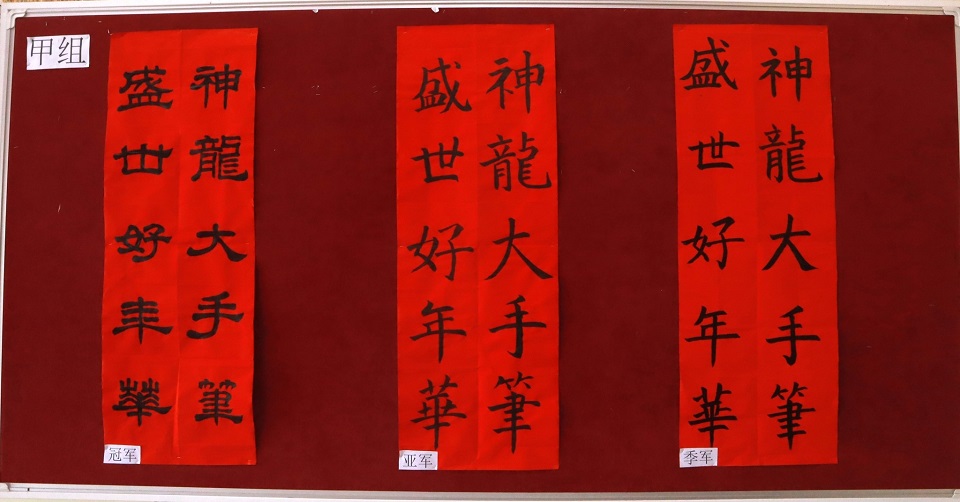 2024年校内挥春比赛得奖名单 主办:书法学会 【甲组(高二、高三)】 冠军:李善惠(高三文美) 亚军:萧欣霈(高三文美) 季军:李瑩恩(高二理) 优胜奖:谢亦淇(高二商1)、罗佩慈(高二商1)、叶婉葶(高二商1)、锺燕慧(高二商1)、许嘉倩(高二文美) . . 【乙组(初三、高一)】 冠军:黄家瑜(初三仁) 亚军:蔡鎵情(高一理) 季军:郑晴宇(高一商1) 优胜奖:陆恩慈(高一商2)、锺祉摇(高一文美)、卢恩瑩(高一商1)、陆宥绚(初三仁)、李尉绮(高一文美) . . 【丙组(初一、初二)】 冠军:庄浩霖(初二信) 亚军:杨铠豪(初二忠) 季军:谢宏彬(初二信) 优胜奖:吴雨晴(初二信)、陈苡茜(初二孝)、陈婕琦(初二忠)、杨康靖(初二忠)、余瑷岓(初二信) |
