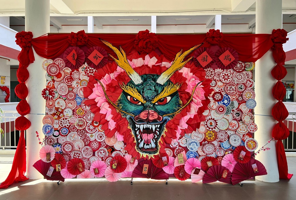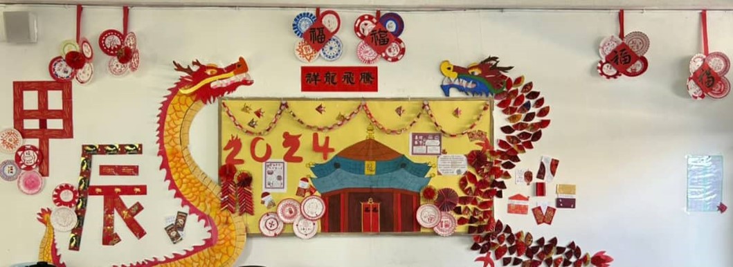 文美班学生制作龙年装饰 龙吟国瑞庆丰年 2024年2月9日发布 本校美术科教师罗榆凌老师日前和文美班的学生以纸碟和彩色纸制作了一幅名为“龙吟国瑞”的龙年装饰,祝贺各界祥龙迎春贺新岁,瑞气东来庆丰年! (照片由罗榆凌老师提供) 2024甲辰龙年校内挥春比赛
